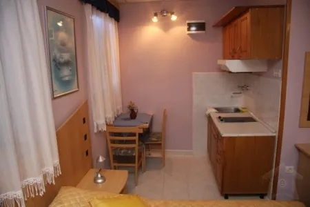 This comfortable apartment contain a combined living area and bedroom with kitchen and private bathroom with Jacuzzi corner bath and shower. It is situated on the south-west side of the house and has a beautiful views, thrue the two windows just over the sea, across the beach on the Vis bay. In this apartment there is not a possibility for extra bed. The studio has double bed, individually controlled air conditioning, lighting with downlighters, minibar and colour TV with satellite channels.