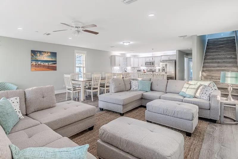 Just Beachy!, Beautiful House rental in Panama City Beach has 7 bedrooms, 6 bathrooms, 17 sleeps, 4 minimum stay House for rent in Panama City Beach Florida with the amenities and near by attractions , Air Conditioning, Blender, Microwave, Telephone, Cable/Satellite TV, DVD Player, Outdoor Grill, Television, Ceiling Fans, Freezer, Oven, Toaster, Coffee Maker, Hair Dryer, Refrigerator, Washer/Dryer, Dishes & Utensils, Iron & Board, Stove, Dishwasher, Coffee Grinder, Heater, First-aid kit, Clothes Dryer, Ice Maker, Dining Area, Basic Soaps, Toilet Paper, Living Room, KettleBrand new, 7 bedroom, 6 bath, Pool, Gameroom/foosball/card table