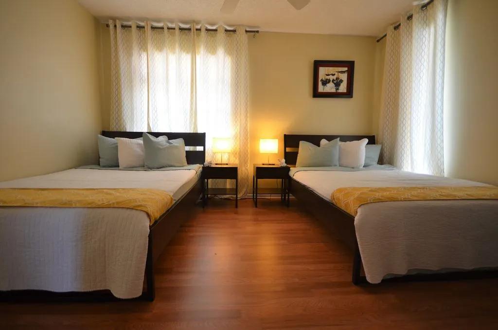 The third bedroom could accommodate even 4 due to its 2 full size beds. It also has a double closet. Access to the guest bathroom is through the small hallway connecting all 3 bedrooms.