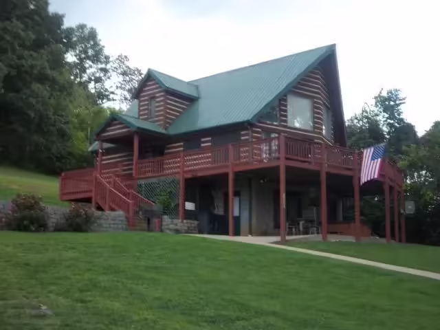 Papa Bear's River Cabin- 3 bedroom, 2 full bath, Riverfront, Beautiful Cabin rental in Shenandoah has 3 bedrooms, 2 bathrooms, 8 sleeps, 2 minimum stay Cabin for rent in Shenandoah Virginia with the amenities and near by attractions , Air Conditioning, Blender, Microwave, Telephone, Cable/Satellite TV, DVD Player, Outdoor Grill, Television, Ceiling Fans, Freezer, Oven, Toaster, Coffee Maker, Hair Dryer, Refrigerator, Washer/Dryer, Dishes & Utensils, Iron & Board, Stove, Dishwasher, Coffee Grinder, Heater, First-aid kit, Clothes Dryer, Ice Maker, Dining Area, Basic Soaps, Toilet Paper, Living Room, Kettle