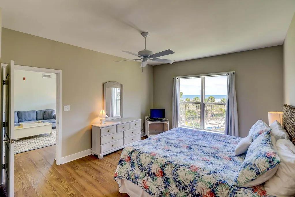 The living room is large and bright and features a flat panel TV and comfortable furnishings which include sofa (which is also a queen sleeper), loveseat, and two statement chairs near the large living room window that offers the most incredible ocean view from the comfort and convenience of your living room. If the view from the window doesn't take your breath away (which we know it will), step outside onto the oceanfront balcony where you will enjoy endless coastline view of the Atlantic Ocean.