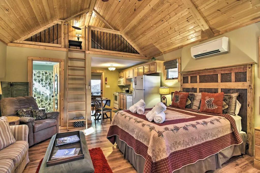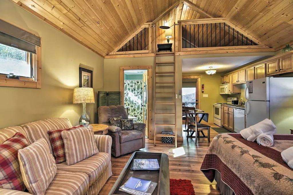 - Amenities include a fully equipped kitchen, free WiFi, a flat-screen TV with ESPN package, open loft, gas fireplace, charcoal grill, private front porch, porch swing, private 6-person hot tub, community fire pit, parking for 2 vehicles, and more!