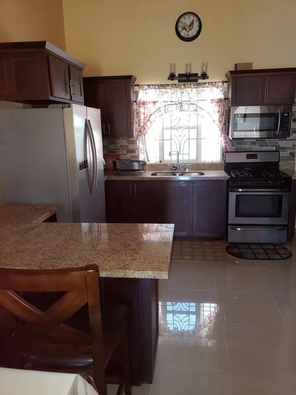 The Royal Escape Home, Beautiful House rental in St. Ann has 2 bedrooms, 2 bathrooms, 4 sleeps, 3 minimum stay House for rent in St. Ann Jamaica with the amenities and near by attractions , Washing Machine, Kitchen, Fire extinguisher, Children allowed, No Smoking, Blender, Microwave, Telephone, Cable/Satellite TV, DVD Player, Outdoor Grill, Television, Ceiling Fans, Freezer, Oven, Toaster, Coffee Maker , Hair Dryer , Refrigerator, Washer/Dryer , Dishes & Utensils, Iron & Board , Stove, Dishwasher, Coffee Grinder, Heater, First-aid kit, Clothes Dryer, Ice Maker, Dining Area, Basic Soaps, Toilet Paper, Living Room, Kettle