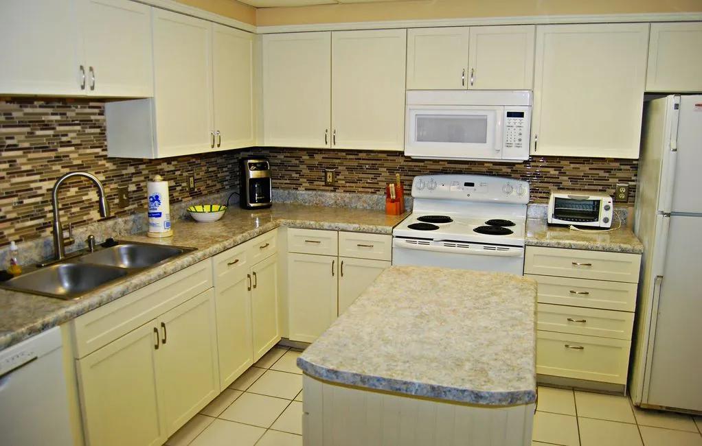 The large fully equipped kitchen includes microwave, oven, dishwasher, disposal, refrigerator w/ice maker, toaster, coffee maker, waffle iron, blender, can opener, dishes, cookware, glasses, and utensils. Also includes plenty of large serving dishes for entertaining. There's a convenient bar area with stools, full size washer and dryer, and a full size ironing board and iron. WiFi also available!!