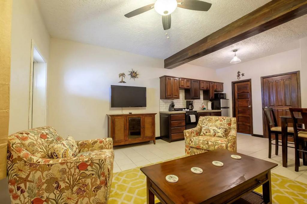 Ocean View King Suite #2 -The Palapa House, Beautiful BnB rental in San Pedro has 1 bedrooms, 1 bathrooms, 4 sleeps, 1 minimum stay BnB for rent in San Pedro Belize with the amenities and near by attractions , Air Conditioning, Paper Towels, Free WiFi, Towels Provided, Wireless Internet, Kitchen, Fire extinguisher, Cable/Satellite TV, Television, Hair Dryer , Iron & Board , First-aid kit, Basic SoapsSmoke alarm, Free parking on premises, Lock on bedroom door, Hangers, Pool, Shampoo, Lock on bedroom door