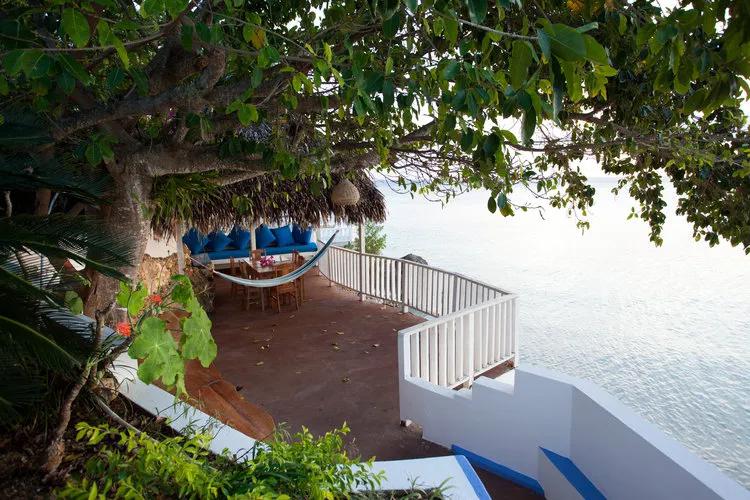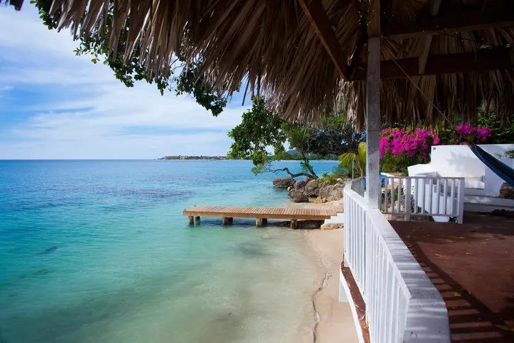 Culloden Cove, Whitehouse, Jamaica, Beautiful Villa rental in Whitehouse has 5 bedrooms, 5 bathrooms, 10 sleeps, 3 minimum stay Villa for rent in Whitehouse Jamaica with the amenities and near by attractions , Air Conditioning, Balcony, Beach Chairs, Beach View, Daily Maid Servics , Deck/Patio, Free WiFi, Full Kitchen, Internet, Kayak / Canoe, Kid Friendly, Linens Provided, No Pets Allowed, Ocean View, Oceanfront, Parking, Porch / Veranda, Private Pool, Towels Provided, Water View, Waterfront, Wireless Internet, Washing Machine, Kitchen, Children Welcome, Swimming pool, Fire extinguisher, No Smoking, Exterior lighting, Blender, Microwave, Cable/Satellite TV, Outdoor Grill, Television, Ceiling Fans, Freezer, Oven, Toaster, Coffee Maker , Hair Dryer , Refrigerator, Dishes & Utensils, Iron & Board , Stove, Coffee Grinder, First-aid kit, Dining Area, Basic Soaps, Toilet Paper, Living Room, KettleVilla Amenities: * beautiful country seacoast villa with 5 A/C bedrooms (3 in Main House, 2 in Cottage) all with Egyptian cotton linen * " Smart TV with internet access in lounge, DVD player, stereo and radio * library with large selection of music, films, books, board games * infinity pool * two (2) sea kayaks, snorel equipment * One acre of tropical gardens * seaside terrace with access to private, sandy beach * Rates do not include Staff Gratuity (10%-15% of villa rental), Transportation or food/drinks -- average US$35/adults and US$15/youths (one can spend more or less depending on market prices and imported goods) * Fully functional kitchen; fridge, stove, microwave, coffee/tea facility * barbecue for outside grilling * wireless internet access anywhere in the house and grounds for BYO laptop * Travel cot and high chair * Safety deposit box * Hairdryer * Daily cooking and housekeeping (linens and towels provided), Full live out staff: cook, housekeeper, gardener/maintenance/security