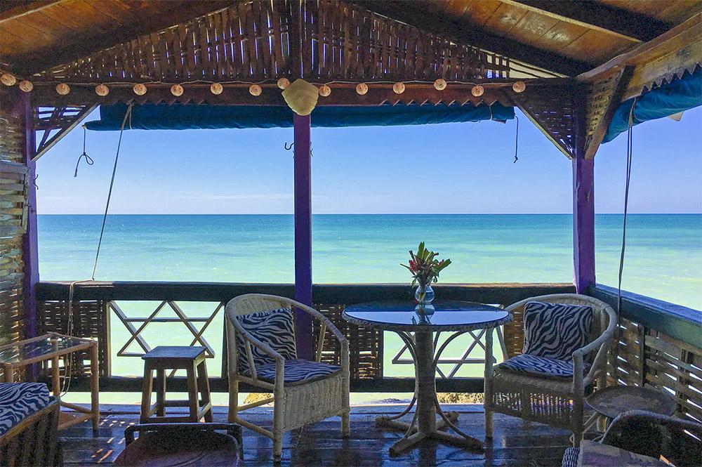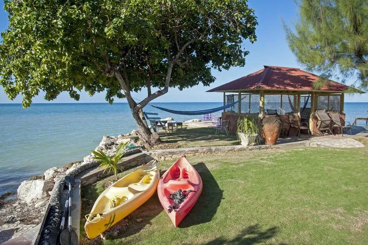 Horizon Cottages - Rasta Ranch & Sea Ranch Belmont, Jamaica, Beautiful Cottage rental in Westmoreland Parish has 2 bedrooms, 2 bathrooms, 4 sleeps, 3 minimum stay Cottage for rent in Westmoreland Parish Jamaica with the amenities and near by attractions , Air Conditioning, Balcony, Beach Chairs, Beach View, Deck/Patio, Free WiFi, Housekeeper Included, Internet, Kayak / Canoe, Kitchenette, Linens Provided, Managed by Property Manager, No Pets Allowed, Not Suitable for Children, Ocean View, Oceanfront, Outdoor Shower, Porch / Veranda, Smoking Allowed, Towels Provided, Water View, Waterfront, Wireless Internet, Fire extinguisher, Beachfront, Blender, Outdoor Grill, Ceiling Fans, Freezer, Toaster, Coffee Maker , Dishes & Utensils, Stove, Coffee Grinder, First-aid kit, Dining Area, Basic Soaps, Toilet Paper, Kettle, Mini Refrigerator, Swimming, Fishing, Bird watching, Boating, Shopping, Wildlife viewing, KayakingEach self-catering cottage sleeps 1-2, not appropriate for children under 15 * 1 queen size bed, ceiling & table fanned, private bathroom - - A/C available for a surchage or US$15/night. This is paid on island directly when used. We ask that you only use the A/C at night when preparing for bed and sleeping * Private outdoor elec. water heated hot/cold shower in garden/sculptural walk-in showers * Completely outfitted kitchen * Living-dining porches * Seaside jetty * Safe beach that you can easily walk out to your waist * Good swimming snorkeling in 12-15 ft waters + live reef, about 1 mile out to sea * Housekeeper 3 times a week, nightly security. Please give a gratuity of US$25-US$30/week * Cook (Laga) available for hire for dinner service for US$20 + supplies * Two Sea kayaks for guest use * Wi-Fi for BYO computer * Great books to peruse