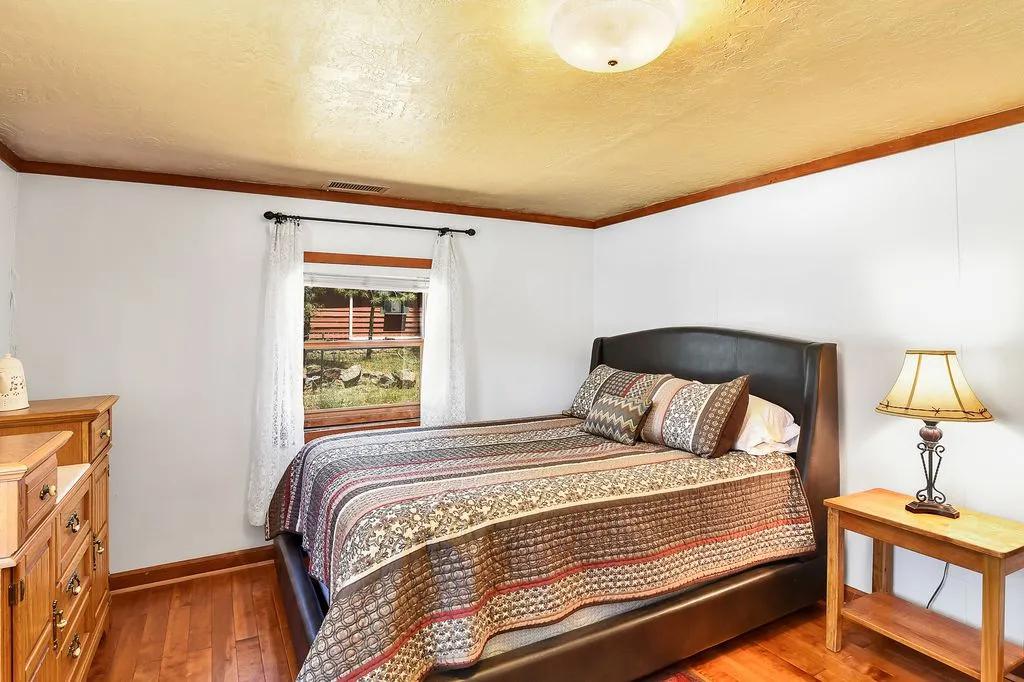Rare 3 BR Log Cabin Treasure / Central to Flagstaff & Grand Canyon, Beautiful Cabin rental in Munds Park has 3 bedrooms, 1 bathrooms, 4 sleeps, 2 minimum stay Cabin for rent in Munds Park Arizona with the amenities and near by attractions , Deck/Patio, Fireplace, Free WiFi, Heated Pool, Heating, Hot Tub, Internet, Linens Provided, Non-Smoking, Parking, Porch / Veranda, Towels Provided, Wireless Internet, Washing Machine, Kitchen, Fire extinguisher, Children allowed, Blender, Microwave, Telephone, Cable/Satellite TV, DVD Player, Outdoor Grill, Television, Ceiling Fans, Freezer, Oven, Toaster, Coffee Maker , Hair Dryer , Refrigerator, Washer/Dryer , Dishes & Utensils, Iron & Board , Stove, Dishwasher, Coffee Grinder, Heater, First-aid kit, Clothes Dryer, Ice Maker, Dining Area, Basic Soaps, Toilet Paper, Living Room, Kettle