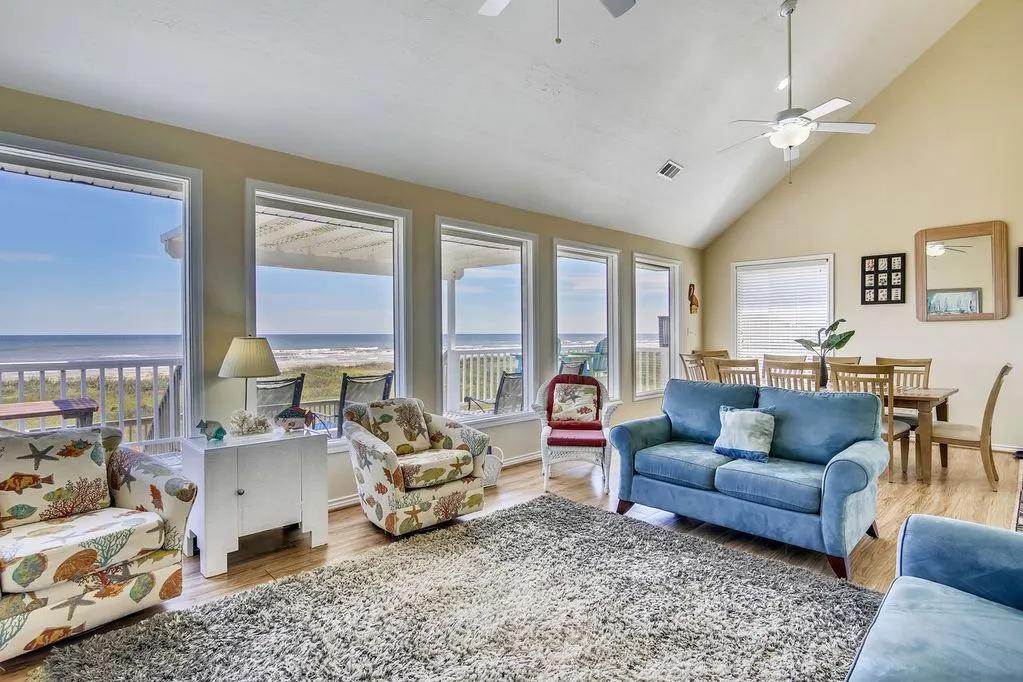 Barefoot Pelican: Beachfront in Sea Isle, Great Balcony! FREE ATTRACTION TICKETS!, Beautiful House rental in Galveston has 3 bedrooms, 2 bathrooms, 10 sleeps, 2 minimum stay House for rent in Galveston Texas with the amenities and near by attractions , Air Conditioning, Balcony, Beach View, Fireplace, Free WiFi, Internet, Lake View, Linens Provided, Parking, Towels Provided, Wireless Internet, Washing Machine, Kitchen, Children Welcome, Fire extinguisher, Children allowed, No Smoking, No parties/events, Blender, Microwave, Telephone, Cable/Satellite TV, DVD Player, Outdoor Grill, Television, Ceiling Fans, Freezer, Oven, Toaster, Coffee Maker , Hair Dryer , Refrigerator, Washer/Dryer , Dishes & Utensils, Iron & Board , Stove, Dishwasher, Coffee Grinder, Heater, First-aid kit, Clothes Dryer, Ice Maker, Dining Area, Basic Soaps, Toilet Paper, Living Room, Kettle