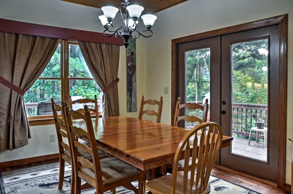 Grand Ellijay Cabin w/Mountain Views + Pool Table!, Beautiful Cabin rental in Ellijay has 4 bedrooms, 3.5 bathrooms, 12 sleeps, 2 minimum stay Cabin for rent in Ellijay Georgia with the amenities and near by attractions , Air Conditioning, Fireplace, Free WiFi, Hot Tub, Internet, Non-Smoking, Parking, Towels Provided, Wireless Internet, Washing Machine, Kitchen, Children Welcome, Swimming pool, Fire extinguisher, Children allowed, No Smoking, Blender, Microwave, Telephone, Cable/Satellite TV, DVD Player, Outdoor Grill, Television, Ceiling Fans, Freezer, Oven, Toaster, Coffee Maker , Hair Dryer , Refrigerator, Washer/Dryer , Dishes & Utensils, Iron & Board , Stove, Dishwasher, Coffee Grinder, Heater, First-aid kit, Clothes Dryer, Ice Maker, Dining Area, Basic Soaps, Toilet Paper, Living Room, Kettle