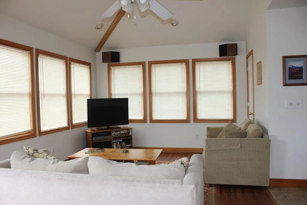 Outside facing the ocean is a 8x24 foot deck excellent for sunbathing by day and stargazing at night. Soundside has a screened in porch with picnic table perfect for dining and watching those incredible Pamilco Sound sunsets. Off the screened in porch is a small cozy deck just right for couples.