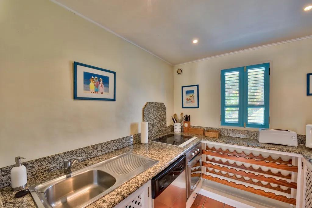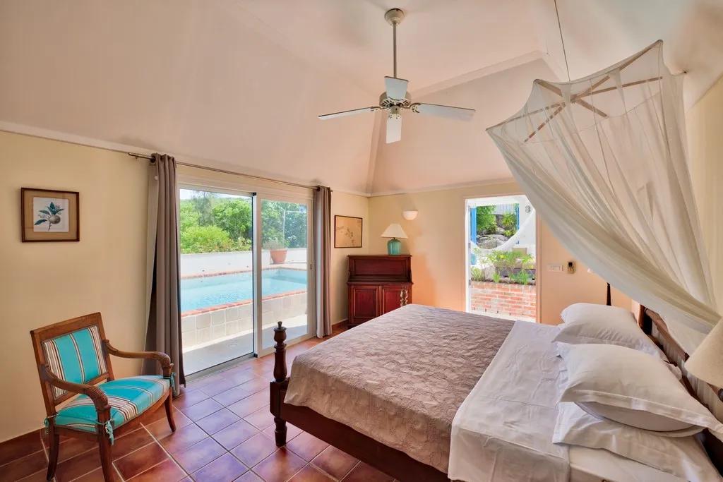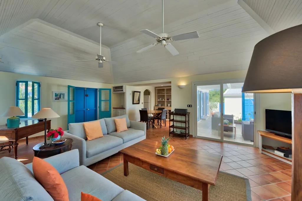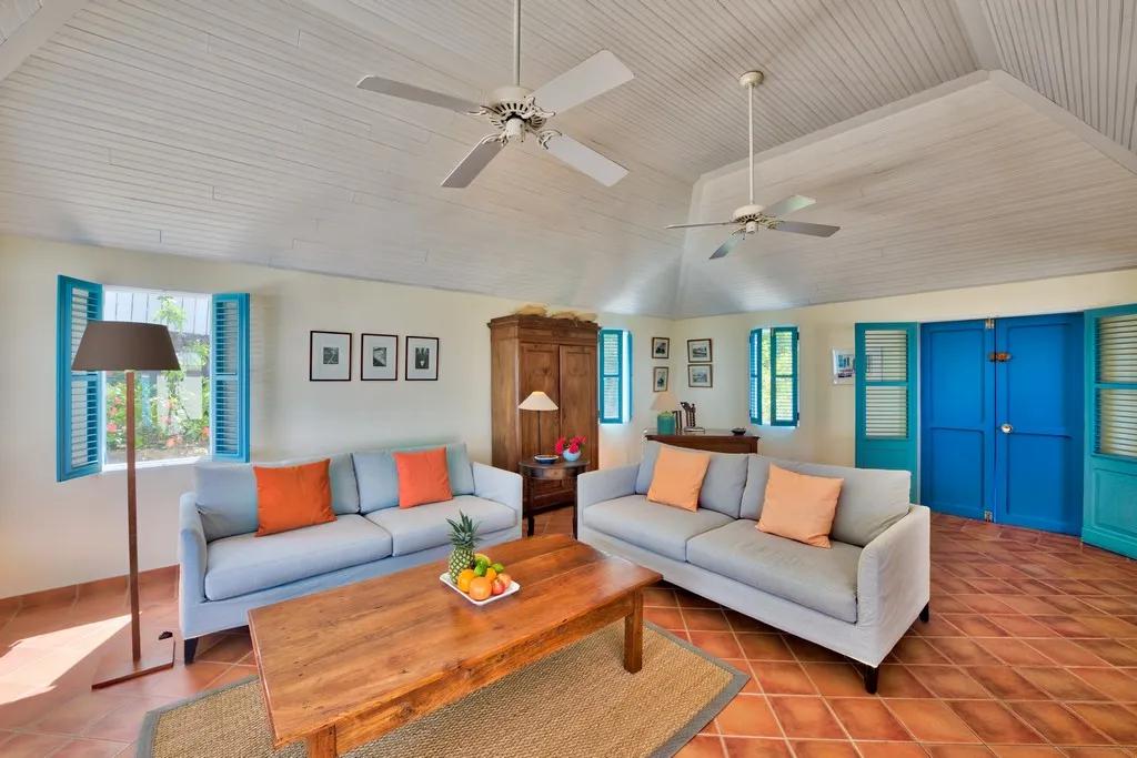This charming Two bedroom villa sits in a large garden overlooking the ocean and Turttle Island. Fully Air-conditioned, villa Blue Rock has one indoor accessed bedroom and one outdoor access bedroom, each with an en-suite bathroom.