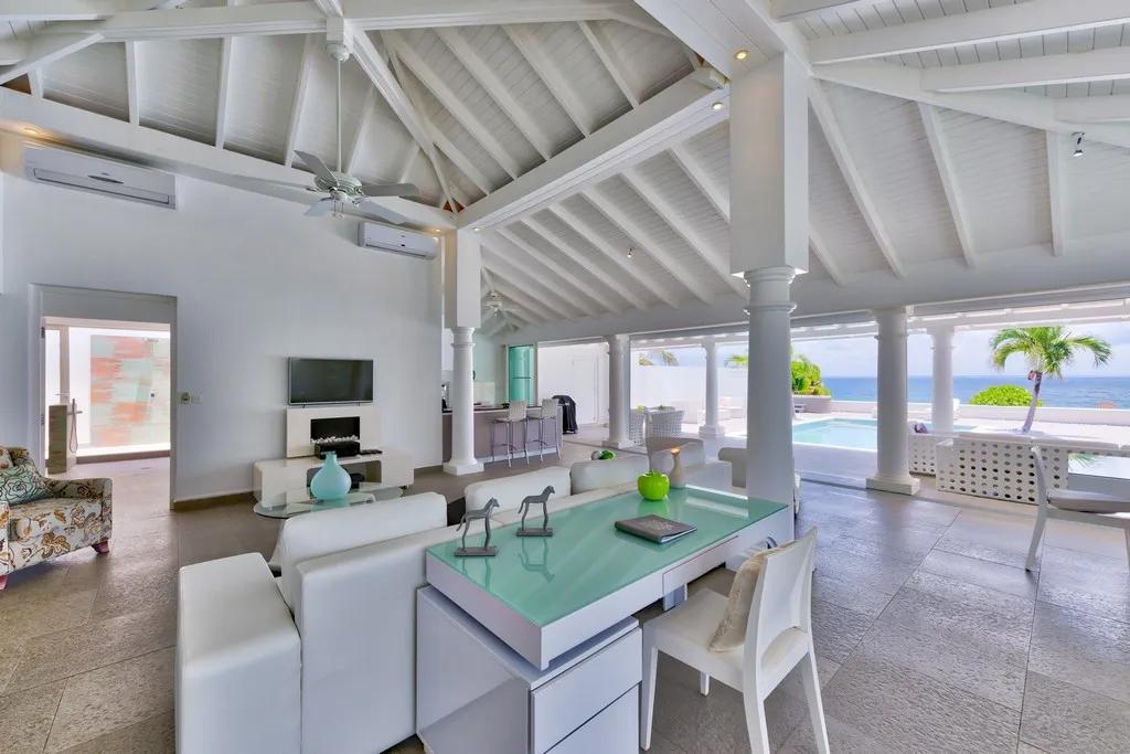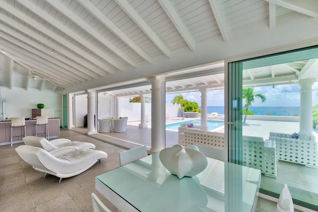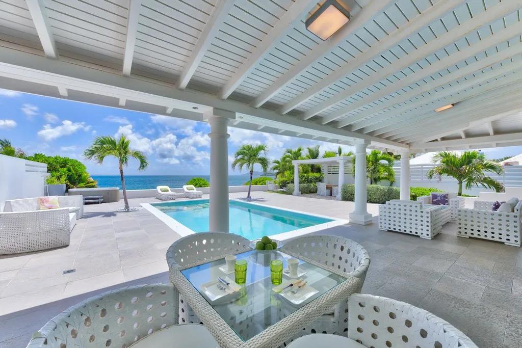La Perla Bianca - Terres Basses - Beachfront French St. Martin, Beautiful Villa rental in Saint Martin has 1 bedrooms, 1 bathrooms, 2 sleeps, 1 minimum stay Villa for rent in Saint Martin Netherlands antilles with the amenities and near by attractions , Air Conditioning, Beach View, Internet, Private Pool, Microwave, Cable/Satellite TV, DVD Player, Television, Ceiling Fans, Hair Dryer , Washer/Dryer , StoveAir-conditioned bedrooms, Air-conditioned living area, Bar-B-Q Gaz, CD player, Connected Bedrooms, Electric Gate, Fridge, Safe, Stereo, Voltage 110/220, Gardener, House keeper, Pool Service