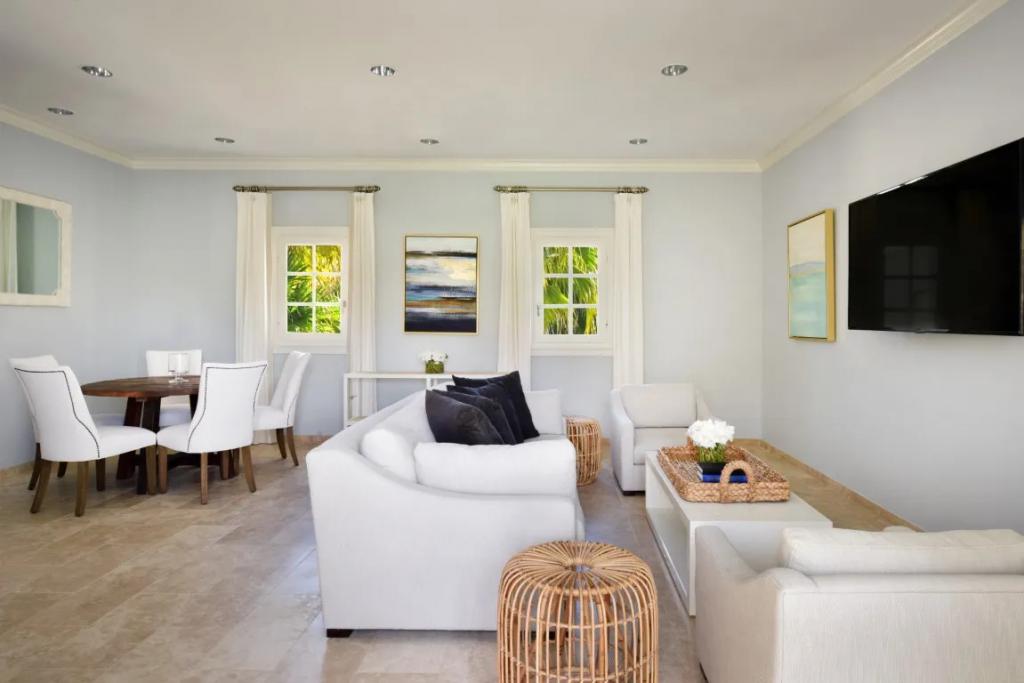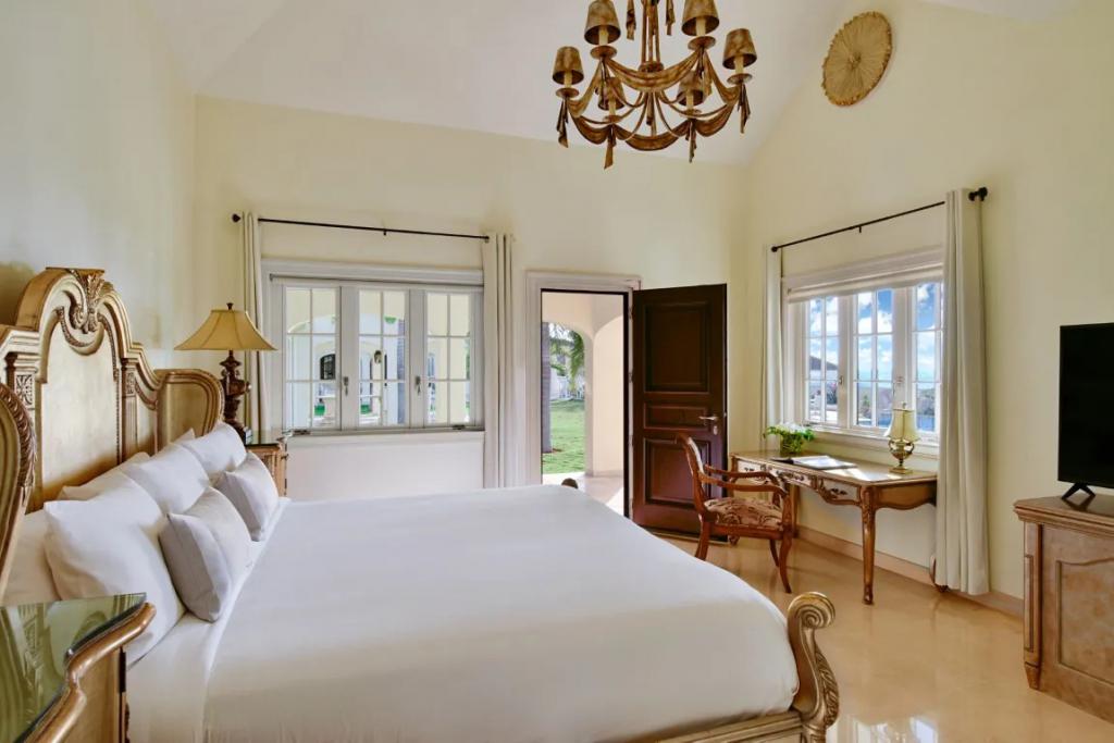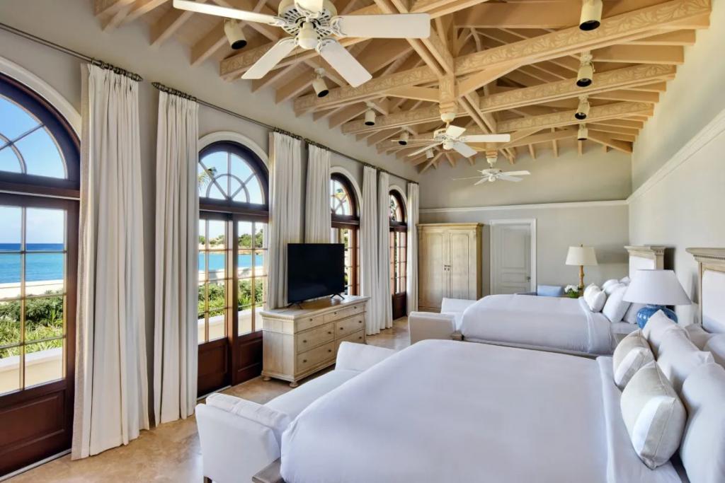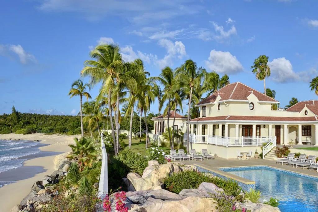 Chateau des Palmiers - Beachfront Terres Basses, French St. Martin, Beautiful Villa rental in Saint Martin has 10 bedrooms, 10 bathrooms, 19 sleeps, 1 minimum stay Villa for rent in Saint Martin Caribbean with the amenities and near by attractions , Air Conditioning, Free WiFi, Heated Pool, Telephone, Cable/Satellite TV, Refrigerator, Washer/Dryer , Ice MakerSynthetic tennis court, 100 yard golf hole, Sunset cabana, Private gym, Barbecue, Ping-Pong, Wide sound system, Electric gate, Generator, Espresso machine, Full service laundry, Adapters included, Direct beach access, Surf Boards, Kayaks, Stand-up paddle-boards, Heated swimming pool, Daily chef service, Laundry service, Daily maid service, Pool service, Gardener, Utilities included, 24-hour maintenance hotline, 15 minutes to Marigot, 5-minute drive to the nearest, grocery store 10 minutes to shopping