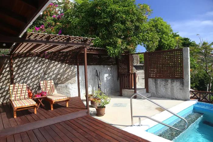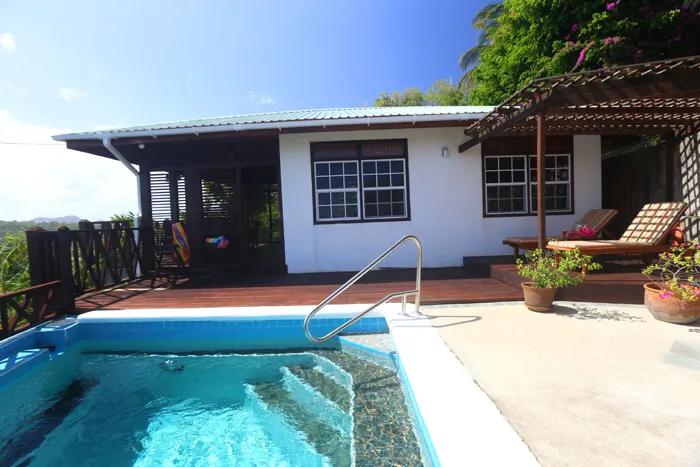 Orchid Cottage - Golf Park, Cap Estate, St. Lucia, Beautiful Cottage rental in Saint lucia has 1 bedrooms, 1 bathrooms, 2 sleeps, 1 minimum stay Cottage for rent in Saint lucia Caribbean with the amenities and near by attractions , Air Conditioning, Internet, Telephone, Cable/Satellite TV, DVD Player, Television, Ceiling Fans, Washer/Dryer Bar-B-Q, CD player, High Speed (ADSL)Internet - Wireless, Safe, Security system, Stereo, Burglar alarm monitored and responded to by Guardsman, Private Plunge Pool, Maid
