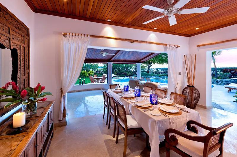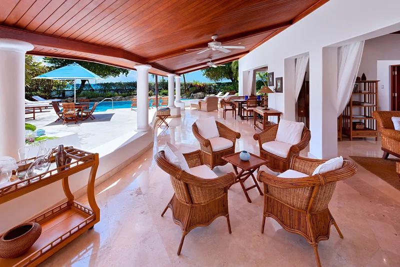 Blue Point - St. James, Beautiful Villa rental in Saint James has 4 bedrooms, 4 bathrooms, 8 sleeps, 1 minimum stay Villa for rent in Saint James Barbados with the amenities and near by attractions , Air Conditioning, Beach View, Wireless Internet, Swimming pool, Cable/Satellite TV, Ceiling FansTennis Court, Tennis Court (nearby), Golf Course (nearby), Watersports (nearby), Watersports, High Speed Wireless ADSL (Broadband), iPod Dock, Security system, Fax Machine, Indoor dining room opens to veranda with comfortable seating overlooking the pool and sun terrace, House Manager, Cook, Housekeeper, Laundress, Bartender/Waiter