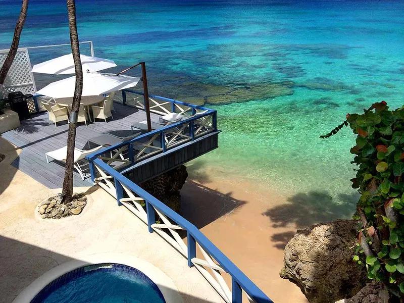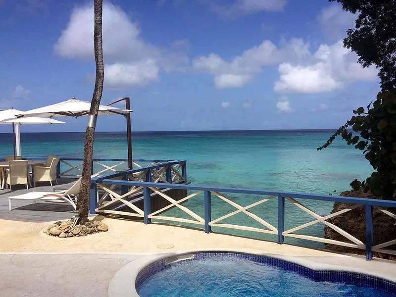 Blue Lagoon - The Garden - St. James, Beautiful Villa rental in Saint James has 3 bedrooms, 3 bathrooms, 6 sleeps, 1 minimum stay Villa for rent in Saint James Barbados with the amenities and near by attractions , Air Conditioning, Beach View, Beachfront, Free WiFi, Towels Provided, Cable/Satellite TV, Ceiling Fans, Hair Dryer , Telephone, TelevisionPlunge pool on a stunning sun terrace, Large driveway allows for ample parking, Romantic setting amongst tropical back drop, Beachfront location with steps down to beach, Set on a bluff -Deep set back from main road, Complete with all modern conveniences needed, 110 volts, ADSL, All bedrooms air conditioned, All bedrooms en suite, BBQ, Breezy location, Ceiling fans in all bedrooms, Concierge Service, Deck / Decking, Gated entrance, Plunge Pool, Private location, Luxury Finishes, Private terrace / deck, Restaurants close by, Security Safe, Staffed, Sun terrace, Sun umbrellas, Security Alarm