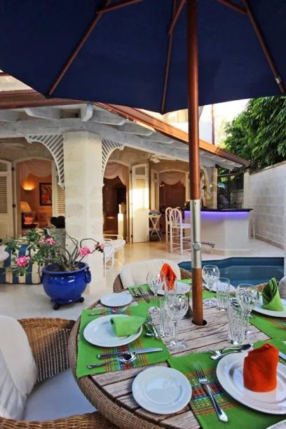 Harmony House - Gibbs Beach, St. Peter, Beautiful Villa rental in Saint Peter has 3 bedrooms, 3 bathrooms, 6 sleeps, 1 minimum stay Villa for rent in Saint Peter Barbados with the amenities and near by attractions , Air Conditioning, Beach View, Free WiFi, Internet, Children Welcome, Cable/Satellite TV, DVD Player, Ceiling Fans, Hair Dryer , Ice MakerPlunge Pool - (9' x 9' and 6' deep), Bar-B-Q, Tennis Court nearby, Golf Course nearby, iPod Dock, Fax Machine, Security system, Maid, Cook, Laundress, Gardener, Night Watchman, Excellent cook - Night Watchman shared with villa next door, Pool Service, Each bedroom is equipped with a safe, Wine cooler and ice machine, Near to Indulgence Spa - Watersports are available on site, Equipped with a flat screen TV connected to DirecTV CD/DVD with surround sound, Master bedroom has a stereo and other bedrooms have portable CD/cassette/radio players, Dining on covered terrace adjoining plunge pool and wet bar area, Large covered coral stone patio lit by handmade copper lanterns and specially designed handmade candle sconces, Golf & Tennis available 15 minutes drive away at Royal Westmoreland, Sandy Lane or West Coast Tennis