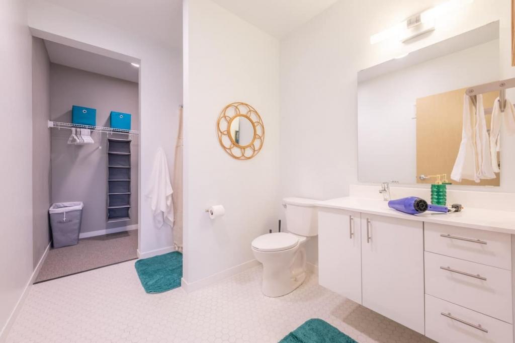 The main bathroom is has tons of space as well as extra towels, a hair dryer, shampoo, conditioner, body wash and more. Feel free to do some laundry, there is a full-size washer/dryer with all the necessary supplies.
