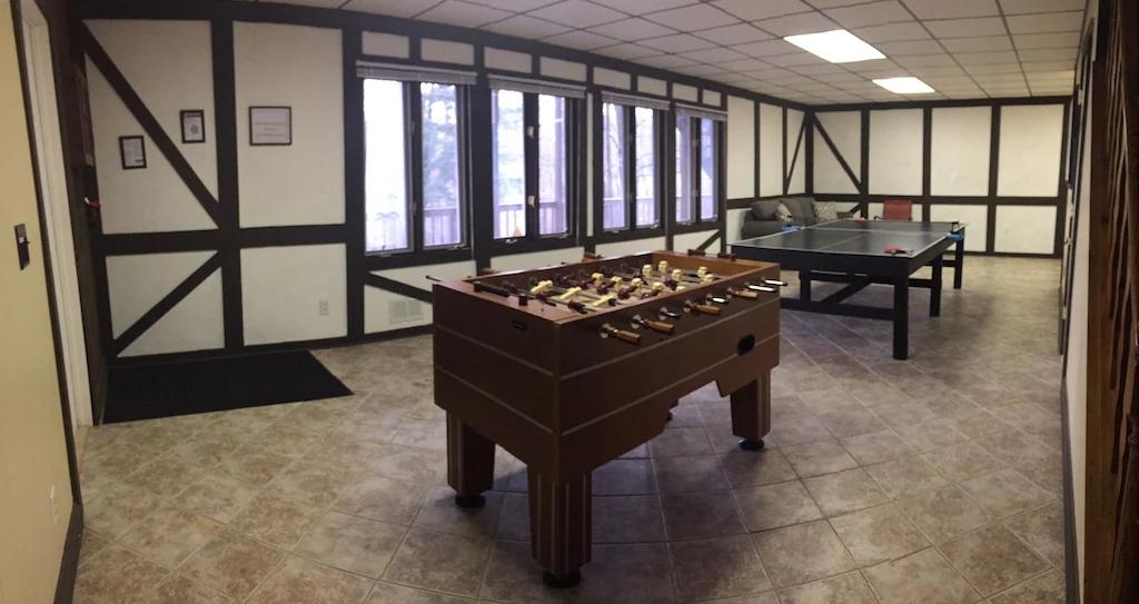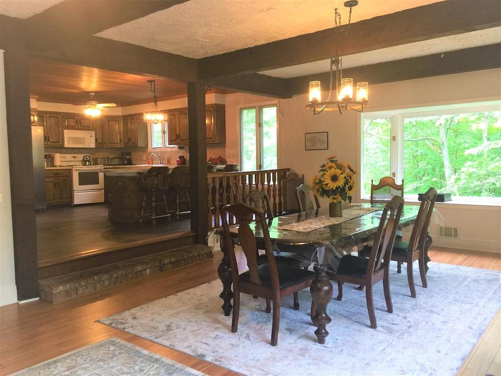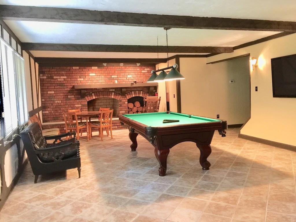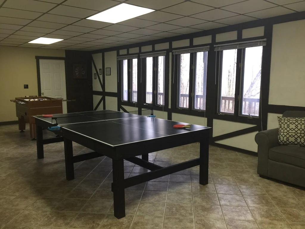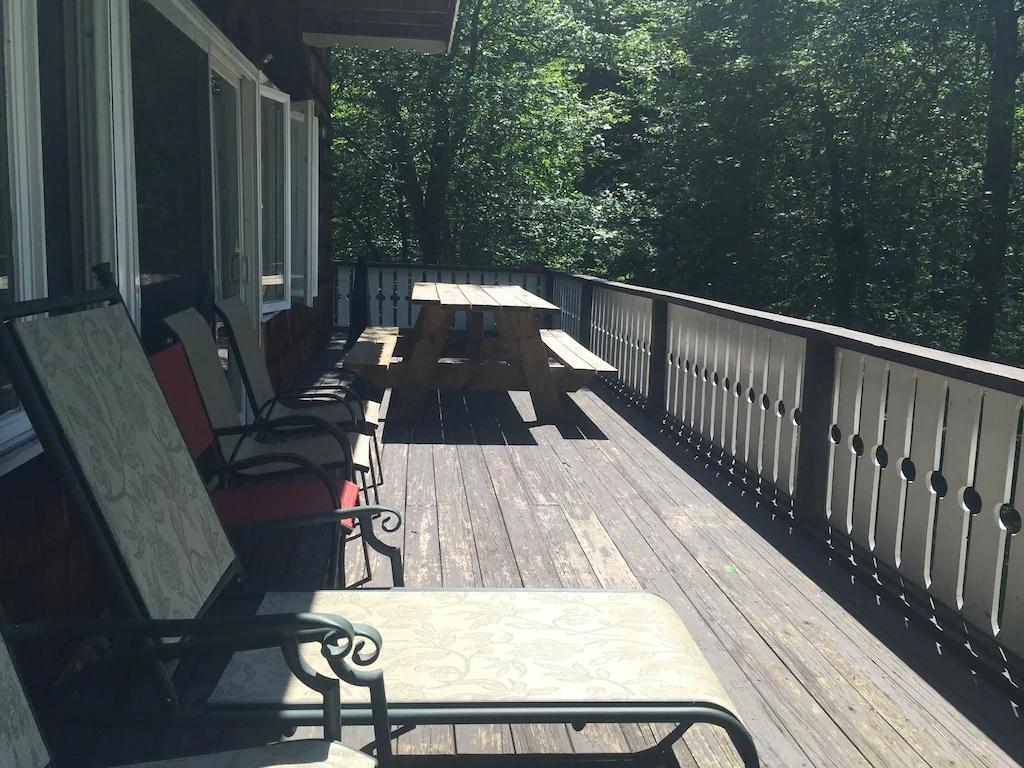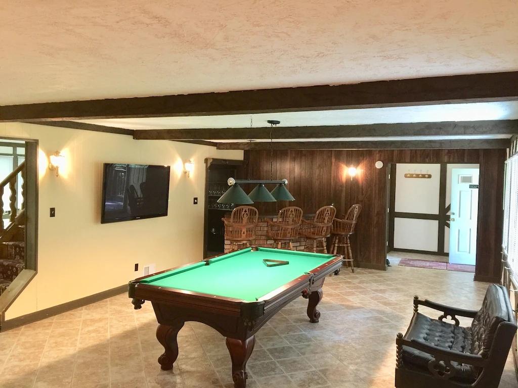 Beautiful Spacious Home Walking Distance to Lake. Game room, Fire Pit, Decks, Beautiful Chalet rental in Pennsylvania has 5 bedrooms, 3.5 bathrooms, 14 sleeps, 2 minimum stay Chalet for rent in Pennsylvania United States of America with the amenities and near by attractions , Air Conditioning, Balcony, Paper Towels, Fireplace, Free WiFi, Full Kitchen, Game Room, Heating, Internet, Kayak / Canoe, Linens Provided, Managed by Owner, No Pets Allowed, Non-Smoking, Parking, Ping Pong Table, Pool Table, Wireless Internet, Washing Machine, Kitchen, Children Welcome, Fire extinguisher, No Smoking, No parties/events, Smoke detector, Carbon-monoxide detector, Exterior lighting, Mountain View, Blender, Microwave, Cable/Satellite TV, Outdoor Grill, Television, Ceiling Fans, Freezer, Oven, Toaster, Coffee Maker , Hair Dryer , Refrigerator, Washer/Dryer , Dishes & Utensils, Iron & Board , Stove, Dishwasher, Heater, First-aid kit, Clothes Dryer, Dining Area, Basic Soaps, Toilet Paper, Living Room, Kettle, HangersDesk, Games for Kids, Pantry Items, Dining table, Kitchen island, Golf, Boat, Fire pit, Games, Foosball, Smart TV, Deadbolt lock, Hospital contact, Emergency exit route, Wheelchair inaccessible, Village, Minimum Age Limit for Renters 26, Long-term Renters Welcome