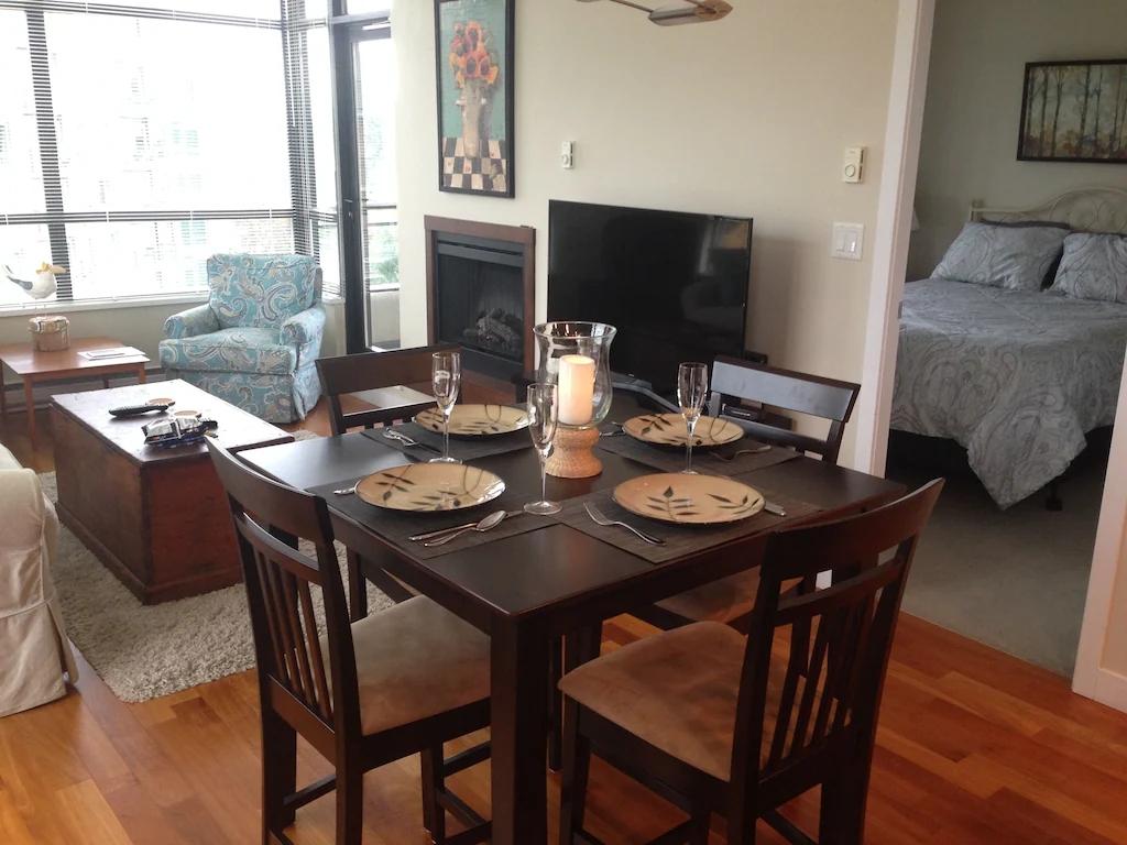 Centrally Located Luxury Condo, Beautiful Condo rental in Victoria has 2 bedrooms, 2 bathrooms, 4 sleeps, 30 minimum stay Condo for rent in Victoria British Columbia with the amenities and near by attractions , Balcony, Deck/Patio, Elevator, Fireplace, Fitness Room , Free WiFi, Full Kitchen, Garage, Heating, Internet, Managed by Owner, Non-Smoking, Not Suitable for Children, Parking, Pet Friendly, Porch / Veranda, Towels Provided, Wheelchair Accessible, Wireless Internet, Washing Machine, Kitchen, No Smoking, No parties/events, Exterior lighting, Blender, Microwave, Telephone, Cable/Satellite TV, Television, Oven, Toaster, Coffee Maker , Hair Dryer , Refrigerator, Washer/Dryer , Dishes & Utensils, Iron & Board , Stove, Dishwasher, Heater, Clothes Dryer, Ice Maker, Dining Area, Basic Soaps, Toilet Paper, Living Room, HangersPantry Items, Golf, Stereo, Deadbolt lock, Near the ocean 2 blocks, Downtown, Minimum Age Limit for Renters 35, Long-term Renters Welcome, Lawn/Garden