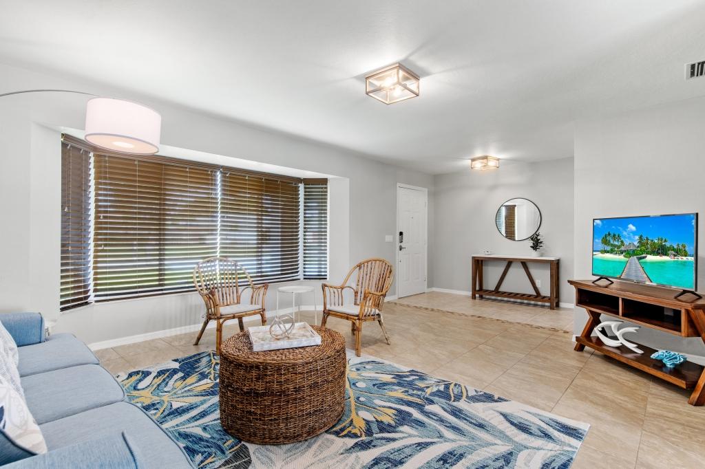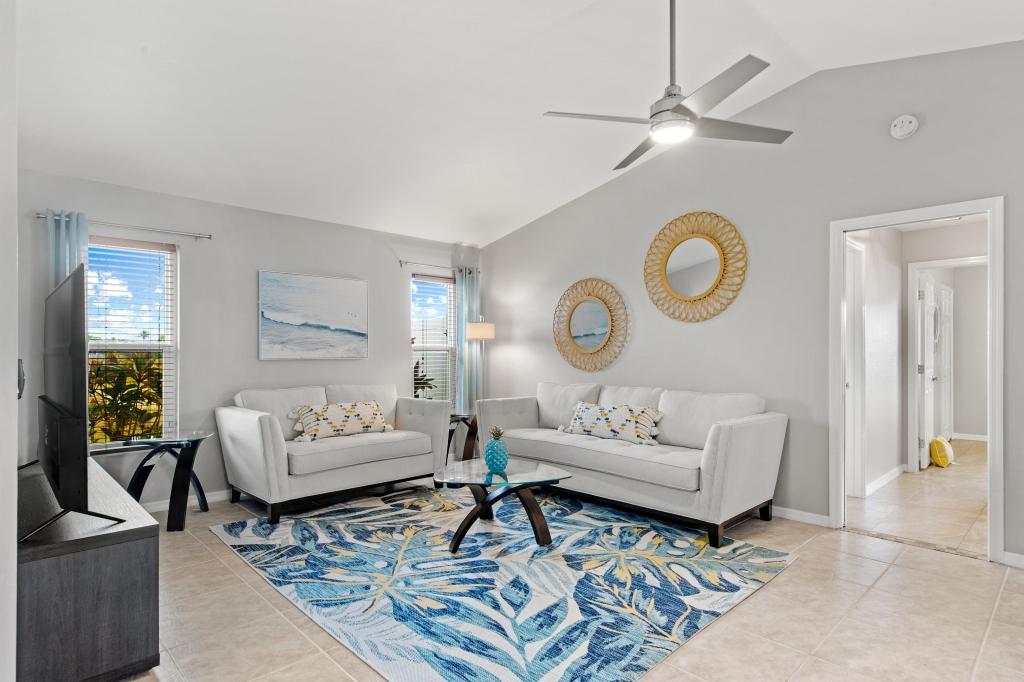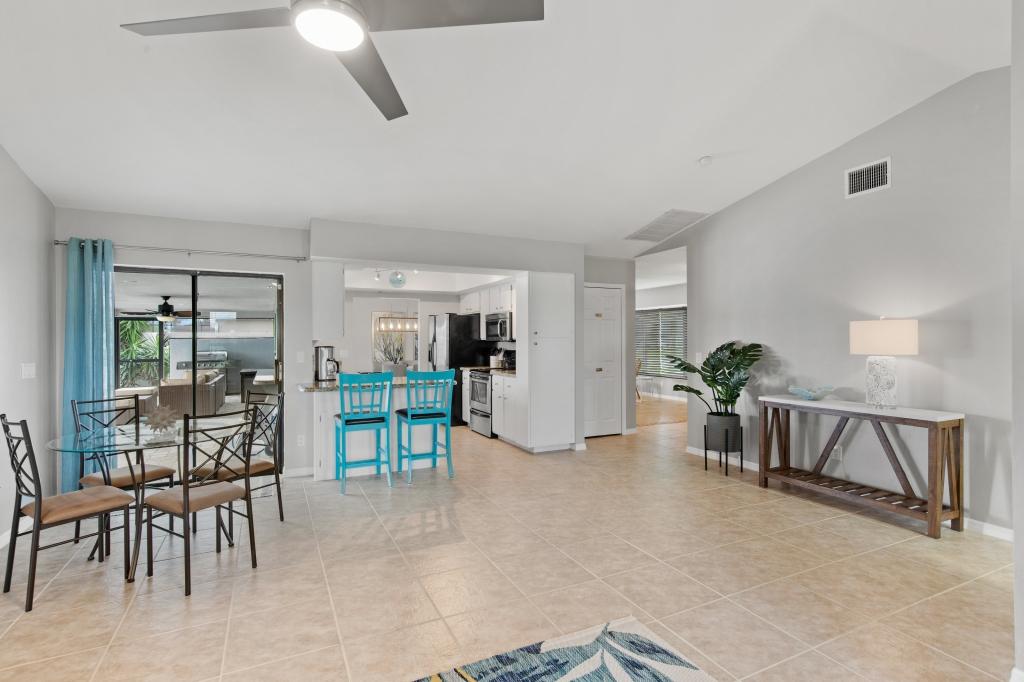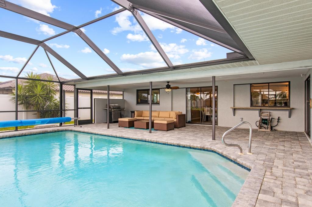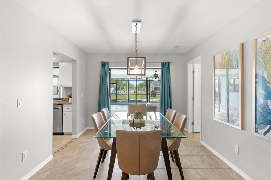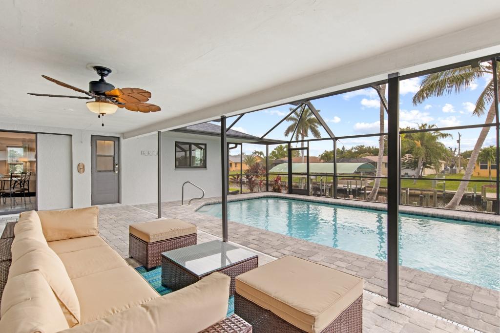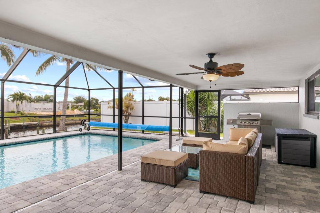 Calming Coastal Contemporary Home on Canal + Relaxing Pool Area!, Beautiful House rental in Cape Coral has 3 bedrooms, 2 bathrooms, 8 sleeps, 7 minimum stay House for rent in Cape Coral Florida with the amenities and near by attractions , Air Conditioning, Beach Chairs, Paper Towels, Dock/Boat Slip, Free WiFi, Full Kitchen, Garage, Heated Pool, Heating, Internet, Kayak / Canoe, Kid Friendly, Lanai, Linens Provided, Managed by Owner, Non-Smoking, Parking, Pet Friendly, Private Pool, Towels Provided, Water View, Waterfront, Wireless Internet, Washing Machine, Kitchen, Swimming pool, Fire extinguisher, Children allowed, No Smoking, No parties/events, Smoke detector, Carbon-monoxide detector, Exterior lighting, Blender, Microwave, Outdoor Grill, Television, Ceiling Fans, Freezer, Oven, Toaster, Coffee Maker , Hair Dryer , Refrigerator, Washer/Dryer , Dishes & Utensils, Iron & Board , Stove, Dishwasher, Heater, First-aid kit, Clothes Dryer, Ice Maker, Dining Area, Toilet Paper, Living Room, HangersFiber Optic Internet, Pets Welcome with Owner Approval, Privacy Fenced, Deadbolt lock, Screened Pool Area, Near the Ocean, Pantry Items, Dining Table, Grill, Breakfast Counter, Games, Television, Smart TV, Housekeeper Optional