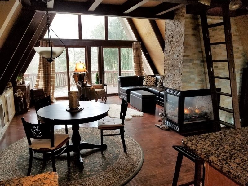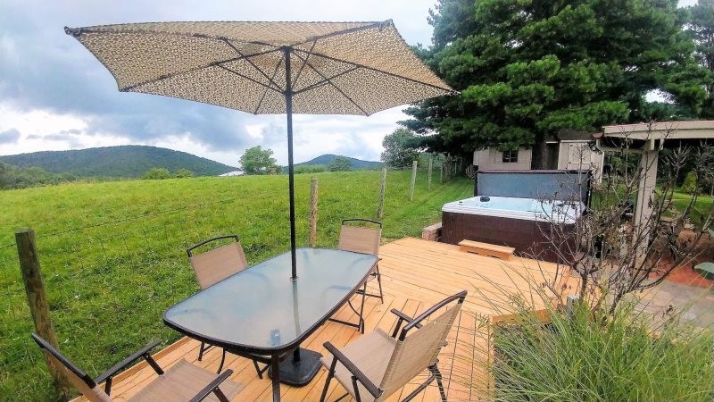 Sunset_Ridge, Beautiful House rental in Luray has 2 bedrooms, 2 bathrooms, 6 sleeps, 2 minimum stay House for rent in Luray Virginia with the amenities and near by attractions , Air Conditioning, Deck/Patio, Fireplace, Full Kitchen, Heating, Hot Tub, Linens Provided, Mountain View, No Pets Allowed, No Smoking, Porch / Veranda, Blender, Cable/Satellite TV, Coffee Maker , Dishwasher, DVD Player, Hair Dryer , Iron & Board , Microwave, Outdoor Grill, Television, Toaster, Washer/Dryer Cathedral Ceilings, Sitting Area in the Loft ("guests agree to use ladder at their own risk"), Cable TV Reception, Internet Access provided, TV in Bedroom (wifi access only), DVD Library, DVD BLU Ray Player, WII U game console-few games provided, Campfire Area- firewood provided, Fireplace- Gas Log, Select Board games, Adirondack Chairs around firepit, Sun Deck, Patio Table & Chairs, BBQ Grill - propane type, NO PHONE