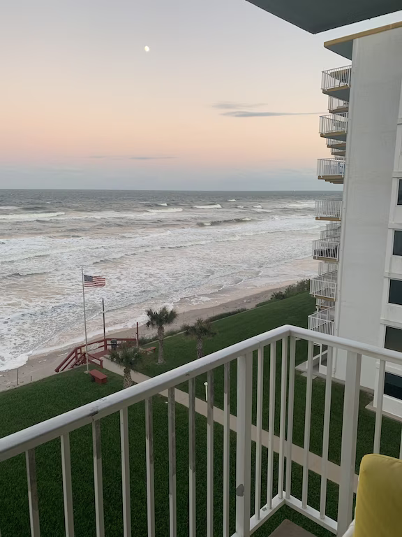 OCEANFRONT 3BR 3BTH New Smyrna BEACH, Beautiful Apartment rental in New Smyrna Beach has 3 bedrooms, 3 bathrooms, 8 sleeps, 7 minimum stay Apartment for rent in New Smyrna Beach Florida with the amenities and near by attractions , Air Conditioning, Balcony, Beach View, Deck/Patio, Elevator, Free WiFi, Full Kitchen, Heated Pool, Heating, Internet, Linens Provided, Managed by Owner, No Pets Allowed, Non-Smoking, Ocean View, Oceanfront, Parking, Water View, Waterfront, Wireless Internet, Kitchen, Children allowed, No Smoking, No parties/events, Beachfront, Blender, Microwave, Telephone, Cable/Satellite TV, Outdoor Grill, Television, Oven, Toaster, Coffee Maker , Hair Dryer , Refrigerator, Washer/Dryer , Dishes & Utensils, Stove, Dishwasher, Ice Maker, Dining Area, Toilet Paper, Living Room, Kettle, HangersCommunity Charcoal Barbecue, Bathtub, Shower, Private Bathroom, Walk-in Closet, Central Air Conditioning, Dining Table, Dining Table Seats, Walk-in Shower, Flat Screen TV, Board Games, Gated Community, Linens Included, High Speed Internet Access, Breakfast Bar, Fully Equipped Kitchen, Gourmet Kitchen, ideal for entertaining family & friends, Utensils, Granite Counter Tops, Pots and Pans, Water Filter, Coin-op Washer/Dryer, Community Washer/Dryer, Convenient laundry facilities are located on every other floor, Designer Furnishings, Sunroom, Hardwood Floors, Renovated unit, Professionally Decorated, designer decor, luxurious oceanfront unit, Spacious, Laundry Service Available, Maid Service Available, Maid Service is additional fee, Patio Furniture, Balcony overlooks picturesque ocean. Glorious views, Within the gated entrance there is plenty of parking available, Outdoor Tennis Courts, Shuffleboard Court, Community Outdoor Heated Pool, Near Shopping, Safe Swimming Beach, Near Golf, Near Town, Near Marina, Near Restaurants, Riverfront