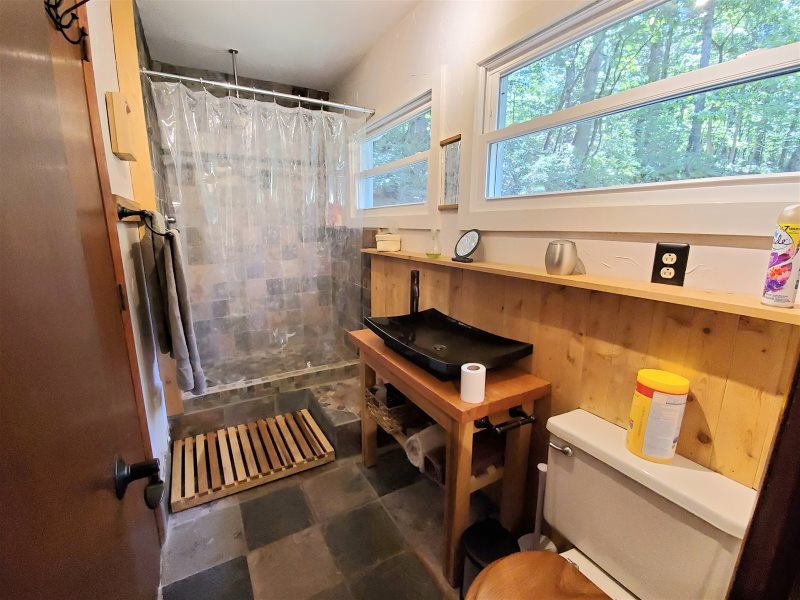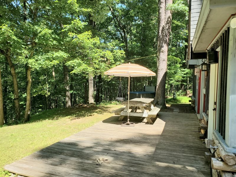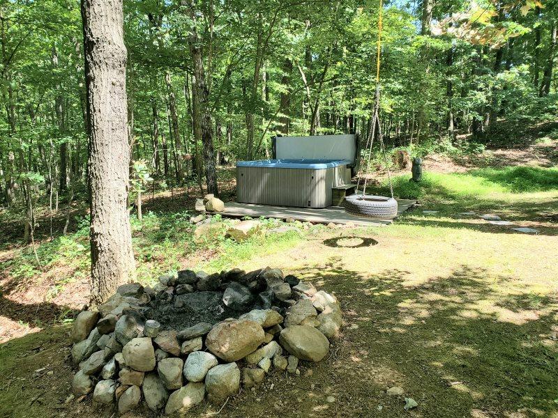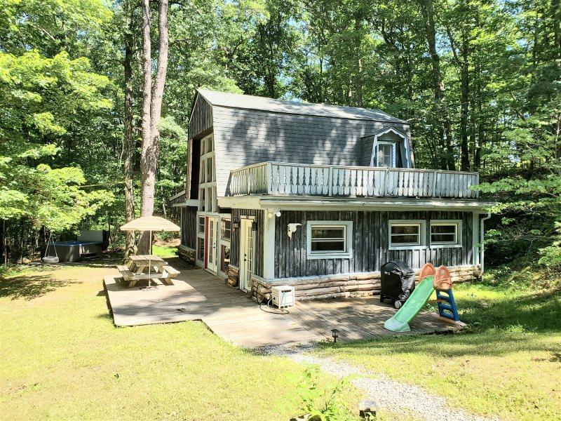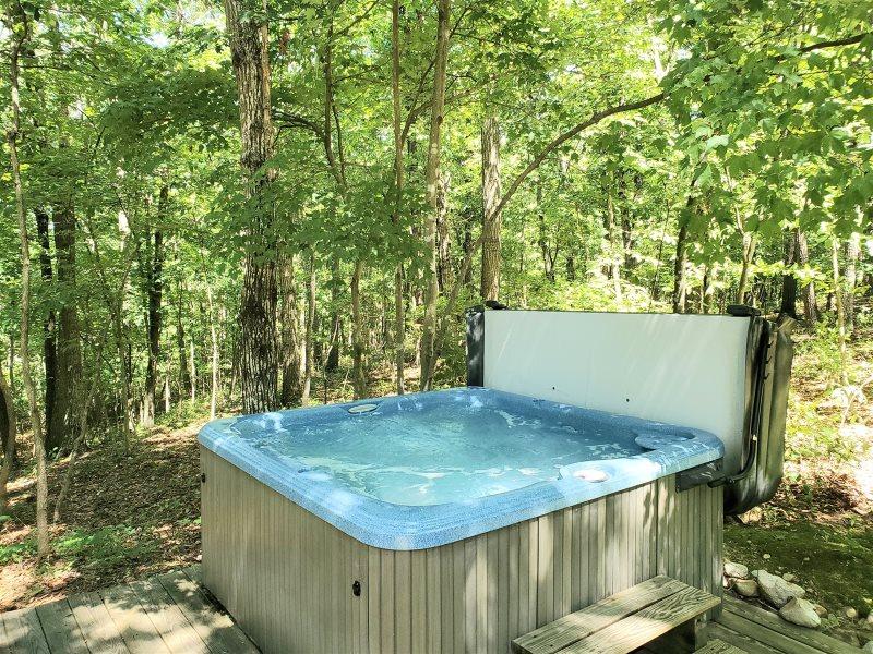 Mountain Hideaway, Beautiful Cabin rental in Luray has 2 bedrooms, 2 bathrooms, 6 sleeps, 2 minimum stay Cabin for rent in Luray Virginia with the amenities and near by attractions , Air Conditioning, Fireplace, Full Kitchen, Heating, Hot Tub, Linens Provided, No Pets Allowed, No Smoking, Coffee Maker , Dishwasher, Living Room, Microwave, Oven, Television, Toaster, Washer/Dryer Outdoor Hot Tub, Jacuzzi tub for 2, Public River Access - 1 mile, Cathedral Ceilings, Fully Equipped Kitchen, Portable A/C unit for cabin, Base Board Heat, Fireplace - Wood Burning -Some Firewood Provided, Flat Screen TV in living room, NO SATELLITE/CABLE RECEPTION, DVD Library, TV in Guest Room - plays DVD's only, TV in bunk bed room - plays DVD's only, WiFi NOT Available, Phone NOT Available, Select Board Games, Picnic Table and Umbrella, Campfire Area – Some Firewood Provided, BBQ Propane Grill