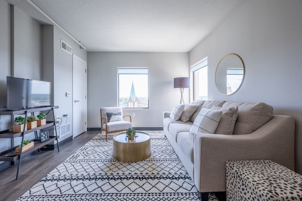 "Birchwood" 1BD Downtown East Village Apt!, Beautiful Apartment rental in Iowa has 1 bedrooms, 1 bathrooms, 5 sleeps, 1 minimum stay Apartment for rent in Iowa United States of America with the amenities and near by attractions , Air Conditioning, Balcony, Paper Towels, Deck/Patio, Elevator, Fitness Room , Free WiFi, Full Kitchen, Heating, Internet, Linens Provided, Parking, Pet Friendly, Porch / Veranda, Towels Provided, Wheelchair Accessible, Wireless Internet, Washing Machine, Kitchen, Children Welcome, Fire extinguisher, Children allowed, No Smoking, No parties/events, Smoke detector, Carbon-monoxide detector, Exterior lighting, Microwave, Cable/Satellite TV, Television, Freezer, Oven, Toaster, Coffee Maker , Hair Dryer , Refrigerator, Washer/Dryer , Dishes & Utensils, Iron & Board , Stove, Dishwasher, Heater, First-aid kit, Clothes Dryer, Ice Maker, Dining Area, Basic Soaps, Toilet Paper, Living Room, Shampoo, HangersCleaning products, Conditioner, Body wash, Hot water, Shower gel, Free washer – In unit, Free dryer – In unit, bed sheets, Bed linen, Extra pillows and blankets, Clothes drying rack, Clothes storage: chest of drawers and wardrobe, Ethernet connection, TV with standard cable/satellite, Cot, Travel cot, High chair, Central air conditioning, Central heating, Central heatingCooking basics(Pots and pans- oil- salt and pepper), Dishes and silverware, Stainless steel electric cooker, Stainless steel oven, Wine glasses, Baking sheet, Dining table, Launderette nearby, Garden, Outdoor furniture, Outdoor dining area, Free parking on premises, Free on-street parking, Lift, Shared gym in building, Paid street parking off premises, Single level home, Luggage drop-off allowed, Long-term stays allowed, Self check-in, Lockbox