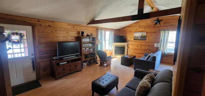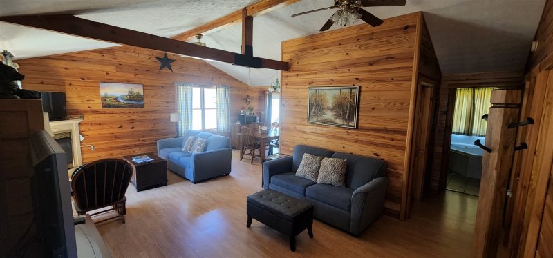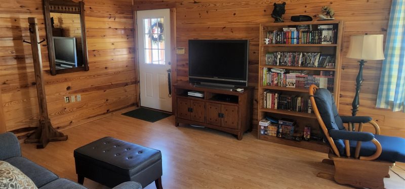 A Cozy Cabin, Beautiful Cabin rental in Luray has 2 bedrooms, 1 bathrooms, 6 sleeps, 2 minimum stay Cabin for rent in Luray Virginia with the amenities and near by attractions , Air Conditioning, Fireplace, Full Kitchen, Heating, Hot Tub, Linens Provided, No Smoking, Pet Friendly, Porch / Veranda, Waterfront, Basic Soaps, Blender, Cable/Satellite TV, Coffee Maker , Dishwasher, DVD Player, Hair Dryer , Iron & Board , Living Room, Microwave, Outdoor Grill, Television, Toaster, Washer/Dryer Public Riverfront Access 1/2 mile to Shenandoah River, Outdoor Hot Tub - 4 Person (no oils- bath bubbles- soaps etc. are allowed in the hot tub), Jacuzzi Tub - 2 Person, Coffee maker drip style, Fully Equipped Kitchen, Keurig style also, Mixer, Gas Fireplace, 2 HDTV's in Livingroom Area, HD TV with Satellite in Each Bedroom, DVD Player in Each Bedroom, X-BOX 360 Console with Controllers and Games, Wi-Fi NOT Available, Phone NOT Provided, Select Board Games, Assorted Movie Library, Assorted Book Library, No Smoking Inside, Screened Front Porch with Chairs, Small Backyard Patio, Picnic Table, Fire Pit Area with Chairs - Firewood Provided, BBQ Charcoal Grill – Charcoal NOT Provided, Outdoor Yard Games, Water Purifying/Softener System, Welcome Basket, Toiletries Basket, Pet Friendly - $25/night per pet
