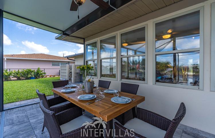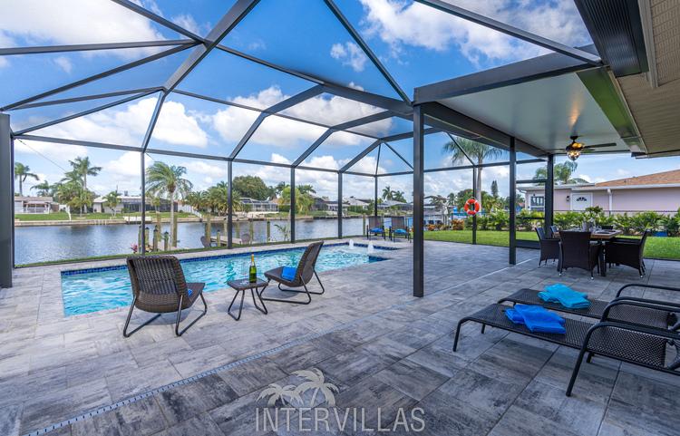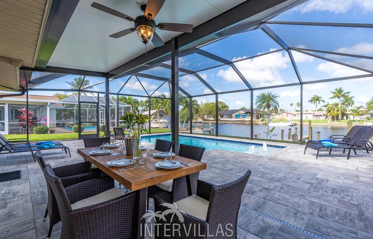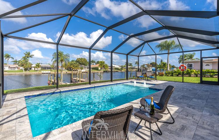 Villa Riviera, Beautiful Villa rental in Cape Coral has 3 bedrooms, 2 bathrooms, 6 sleeps, 1 minimum stay Villa for rent in Cape Coral Florida with the amenities and near by attractions , Air Conditioning, Beach Chairs, Free WiFi, Garage, Heated Pool, Parking, Swimming pool, Towels Provided, Washing Machine, Ceiling Fans, Clothes Dryer, Coffee Maker , Dishwasher, Freezer, Ice Maker, Microwave, Outdoor Grill, Oven, Refrigerator, TelevisionBoatrental, Netflix, Golf, Luxury Homes, Beach towels, Deck chairs, Gas Grill outside, Bath towels, 6 Garden-Chairs, Garden, Covered seating area, 4 Deck-Chairs, Boat Dock, Cutlery & Glasses, Ceramic / ceramic hob, Kitchen bar, Mixer, Cold water dispenser, High quality equipment BOSCH and WHIRLPOOL
