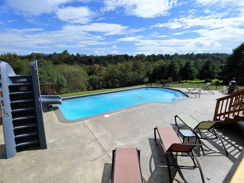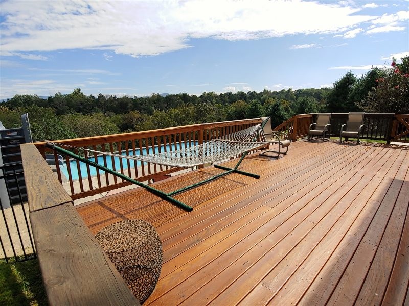 Ashleyrose on the River, Beautiful Cabin rental in Luray has 4 bedrooms, 3 bathrooms, 12 sleeps, 2 minimum stay Cabin for rent in Luray Virginia with the amenities and near by attractions , Air Conditioning, Deck/Patio, Fireplace, Free WiFi, Full Kitchen, Game Room, Heating, Internet, Mountain View, No Pets Allowed, No Smoking, Pool Table, Porch / Veranda, Private Pool, Swimming pool, Water View, Blender, Cable/Satellite TV, Coffee Grinder, Coffee Maker , Dishwasher, DVD Player, Living Room, Microwave, Outdoor Grill, Oven, Toaster, Washer/Dryer Floating Dock, picnic table, and campfire down at the river, 3.5 Acres with 235' of riverfront about 150 yards downhill from cabin, Beautiful Mountain Views, Jacuzzie Tub for 2, Double Wall ovens, Trash Compactor, Garbage Disposal, Linens NOT PROVIDED, AM/FM Radio/CD player/Ipod Dock, Satellite TV - Living room- Master bedroom and Basement, Fireplace- Wood burning- FIREWOOD NOT PROVIDED, Campfire area -1 by the house, and 1 by the river- firewood not provided at either, Pool table/Air Hockey combo unit, Screened in Porch Area, Sun Deck, Large Deck, Patio Area with Table and Chairs, BBQ Grill - Propane type, NO PHONE, water purification system, Hammock