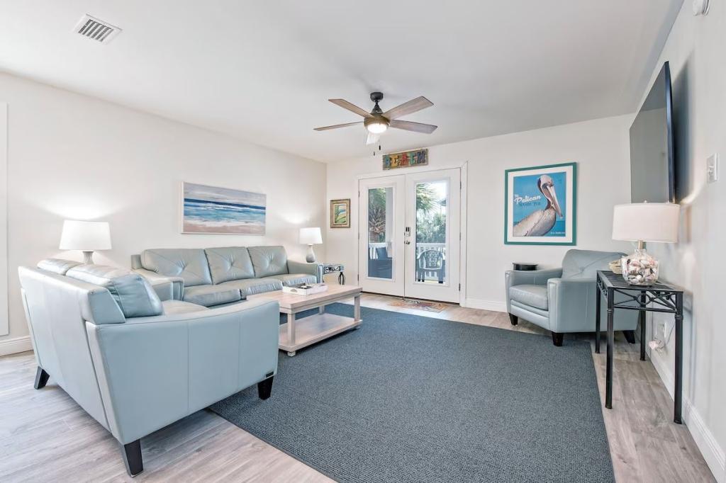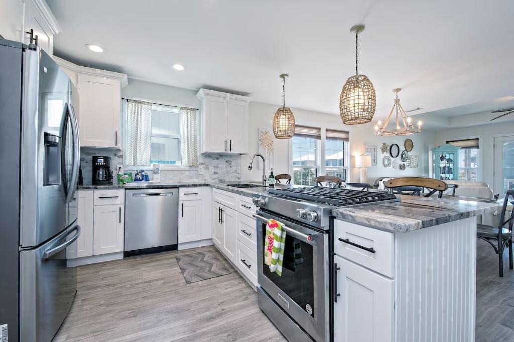 Beautifully Remodeled - Short Walk to Beach!, Beautiful House rental in Gulf Shores has 6 bedrooms, 4 bathrooms, 14 sleeps, 1 minimum stay House for rent in Gulf Shores Alabama with the amenities and near by attractions , Air Conditioning, Balcony, Beach Chairs, Carbon-monoxide detector, Children Welcome, Deck/Patio, Exterior lighting, Fire extinguisher, Fireplace, Free WiFi, Garage, Heating, Internet, Kitchen, Linens Provided, No parties/events, No Pets Allowed, No Smoking, Outdoor Shower, Paper Towels, Parking, Porch / Veranda, Smoke detector, Towels Provided, Washing Machine, Wheelchair Accessible, Wireless Internet, Basic Soaps, Blender, Cable/Satellite TV, Clothes Dryer, Coffee Maker , Dining Area, Dishes & Utensils, Dishwasher, First-aid kit, Hair Dryer , Heater, Ice Maker, Iron & Board , Kettle, Living Room, Microwave, Outdoor Grill, Oven, Refrigerator, Shampoo, Stove, Television, Toaster, Toilet Paper, Washer/Dryer Wifi speed 100+ Mbps, Lobster Pot, Kitchen island, Outdoor Furniture, Smart TV, Deadbolt lock, Near the ocean, Beach, Minimum Age Limit for Renters 25