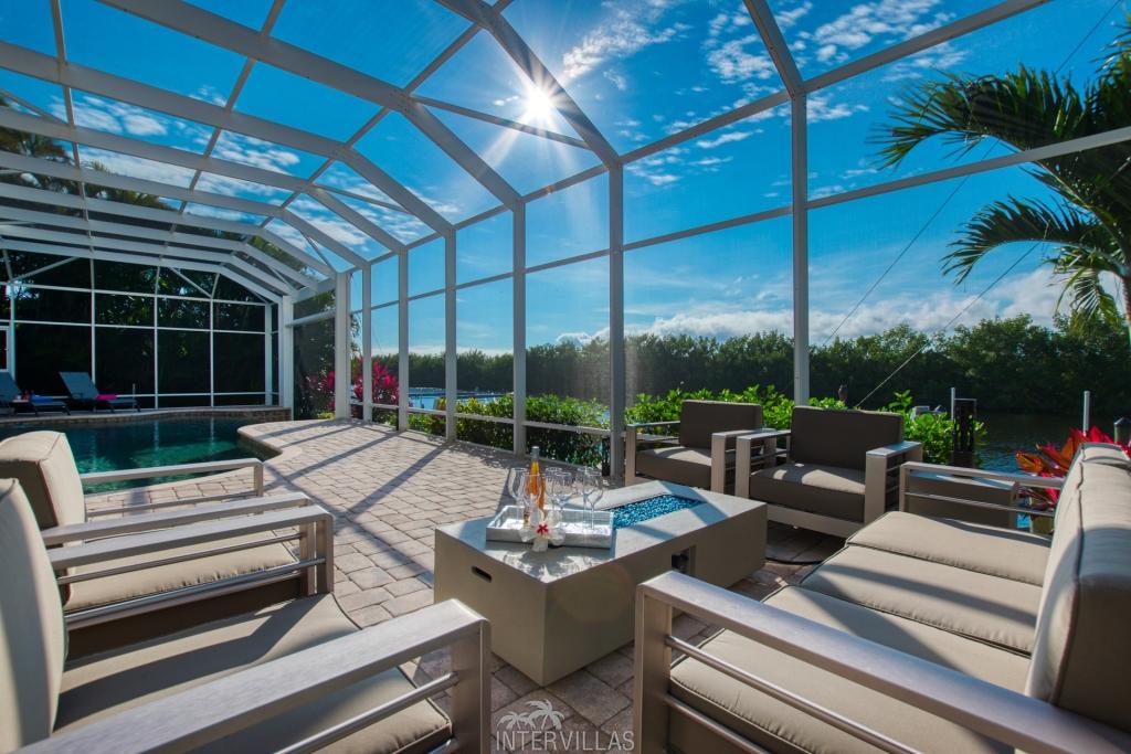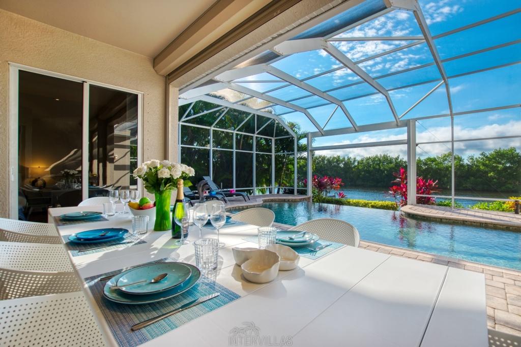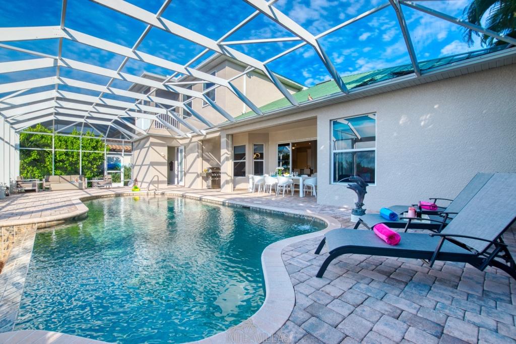 Villa Brightwater, Beautiful Villa rental in Cape Coral has 6 bedrooms, 4 bathrooms, 12 sleeps, 1 minimum stay Villa for rent in Cape Coral Florida with the amenities and near by attractions , Air Conditioning, Beach Chairs, Free WiFi, Garage, Kayak / Canoe, Parking, Swimming pool, Towels Provided, Washing Machine, Cable/Satellite TV, Ceiling Fans, Clothes Dryer, Coffee Maker , Dishwasher, Freezer, Ice Maker, Iron & Board , Microwave, Outdoor Grill, Oven, Refrigerator, Television, ToasterBoatrental, Barbecue Outdoor Kitchen, Kayak, Nespresso coffee machine, Salt water pool, Flat iron, Game Console, Stereo, Netflix, Highspeed WLAN, Sofa bed, Deck chairs, Coolbox, Beach towels, Garden, 2 Garden-Chairs, Covered seating area, Gas Grill outside, 3 Deck-Chairs, Boat lift, Boat Dock, Barbecue, Ceramic / ceramic hob, Cold water dispenser, High Chair, Cutlery & Glasses, Mixer, Kitchen bar, Breakfast nook