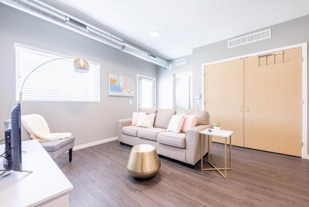 "Rosa" 2BD/2BA Downtown "Market District" Apt!, Beautiful Apartment rental in Des Moines has 2 bedrooms, 2 bathrooms, 5 sleeps, 2 minimum stay Apartment for rent in Des Moines Iowa with the amenities and near by attractions , Air Conditioning, Balcony, Paper Towels, Deck/Patio, Elevator, Fitness Room , Free WiFi, Full Kitchen, Game Room, Heating, Internet, Kid Friendly, Linens Provided, Non-Smoking, Parking, Pet Friendly, Porch / Veranda, Towels Provided, Wheelchair Accessible, Wireless Internet, Washing Machine, Kitchen, Children Welcome, Fire extinguisher, Children allowed, No Smoking, No parties/events, Smoke detector, Carbon-monoxide detector, Exterior lighting, Microwave, Cable/Satellite TV, Outdoor Grill, Television, Ceiling Fans, Freezer, Oven, Toaster, Coffee Maker , Hair Dryer , Refrigerator, Washer/Dryer , Dishes & Utensils, Iron & Board , Stove, Dishwasher, Heater, First-aid kit, Clothes Dryer, Ice Maker, Dining Area, Basic Soaps, Toilet Paper, Living Room, Shampoo, HangersLift, Bath, Cleaning products, Conditioner, Body wash, Hot water, Shower gel, bed sheets, Bed linen, Extra pillows and blankets, Iron, Clothes drying rack, Clothes storage: walk-in wardrobe, Ethernet connection, HDTV with standard cable/satellite, Cot, Travel cot, High chair, Dedicated workspace: table, Cooking basics(Pots and pans- oil- salt and pepper), Dishes and silverware, Wine glasses, Baking sheet, Barbecue utensils, Launderette nearby, Shared garden, Outdoor furniture, Outdoor dining area, BBQ grill, Free parking on premises, Free on-street parking, Lift, Shared gym in building, Single level home, Pets allowed, Luggage drop-off allowed, Long-term stays allowed, Self check-in, Smart lock