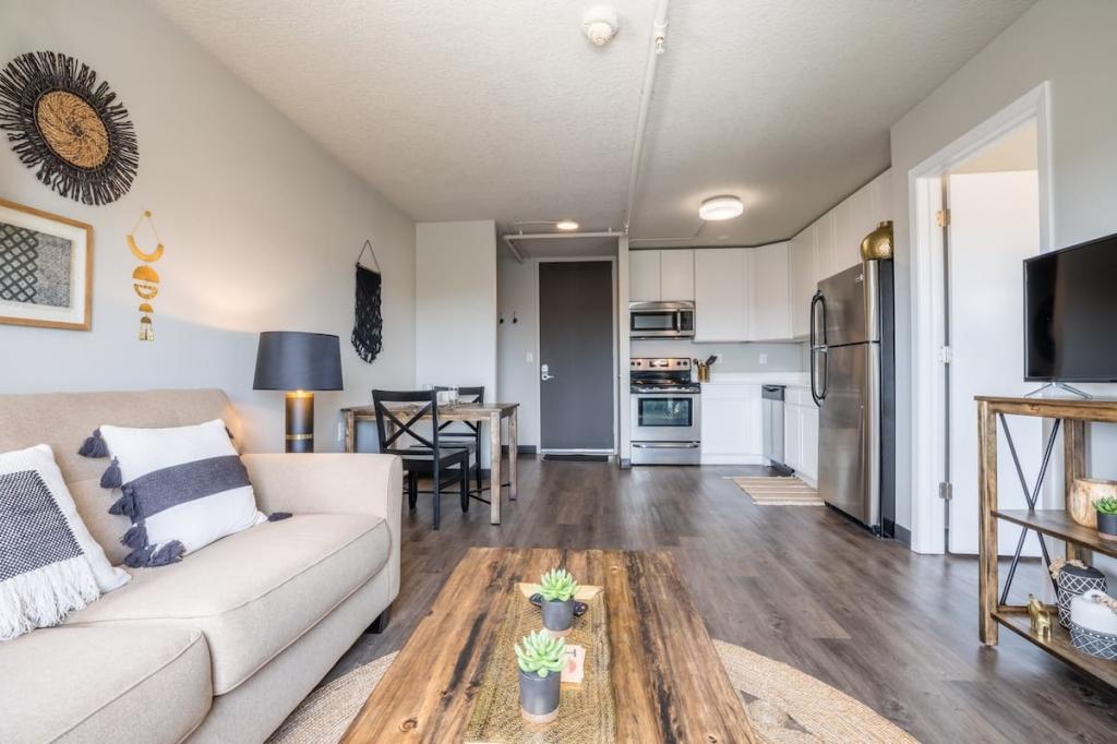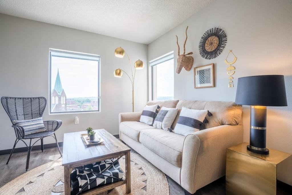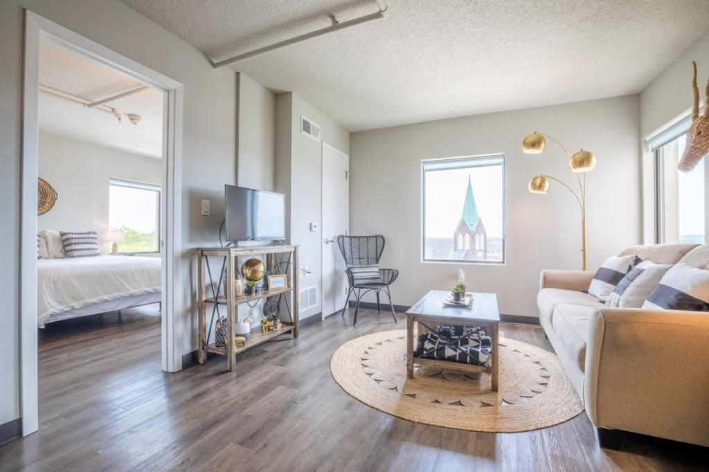 "Wild Oasis" 1BD/1BA Downtown East Village Apt!, Beautiful Apartment rental in Des Moines has 1 bedrooms, 1 bathrooms, 3 sleeps, 1 minimum stay Apartment for rent in Des Moines Iowa with the amenities and near by attractions , Air Conditioning, Balcony, Paper Towels, Deck/Patio, Elevator, Fitness Room , Free WiFi, Full Kitchen, Game Room, Heating, Internet, Kid Friendly, Linens Provided, Non-Smoking, Parking, Pet Friendly, Porch / Veranda, Towels Provided, Wheelchair Accessible, Wireless Internet, Washing Machine, Kitchen, Children Welcome, Fire extinguisher, Children allowed, No Smoking, No parties/events, Smoke detector, Carbon-monoxide detector, Exterior lighting, Microwave, Cable/Satellite TV, Television, Freezer, Oven, Toaster, Coffee Maker , Hair Dryer , Refrigerator, Washer/Dryer , Dishes & Utensils, Iron & Board , Stove, Dishwasher, Heater, First-aid kit, Clothes Dryer, Ice Maker, Dining Area, Basic Soaps, Toilet Paper, Living Room, Shampoo, HangersLift, Cleaning products, Conditioner, Body wash, Hot water, Shower gel, Bed linen, Extra pillows and blankets, Clothes drying rack, Clothes storage: chest of drawers and wardrobe, TV with standard cable/satellite, Cot, Travel cot, High chair, Dedicated workspace, Cooking basics(Pots and pans- oil- salt and pepper), Dishes and silverware, Wine glasses, Baking sheet, Dining table, Launderette nearby, Garden, Outdoor furniture, Outdoor dining area, Free parking on premises, Free on-street parking, Lift, Gym, Paid parking off premises, Single level home, Pets allowed, Luggage drop-off allowed, Long-term stays allowed, Self check-in, Lockbox