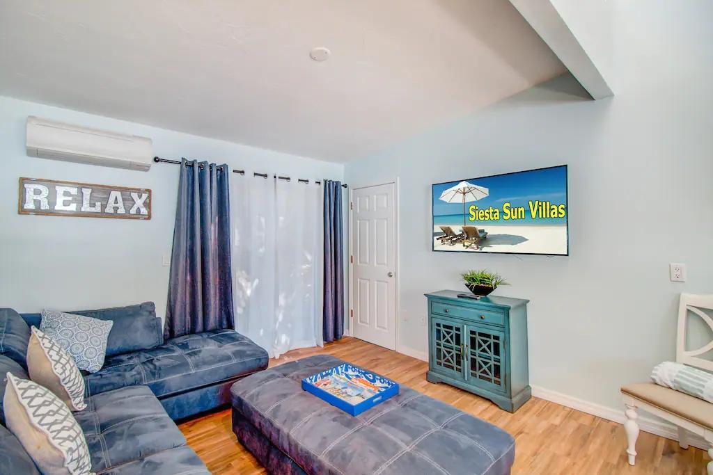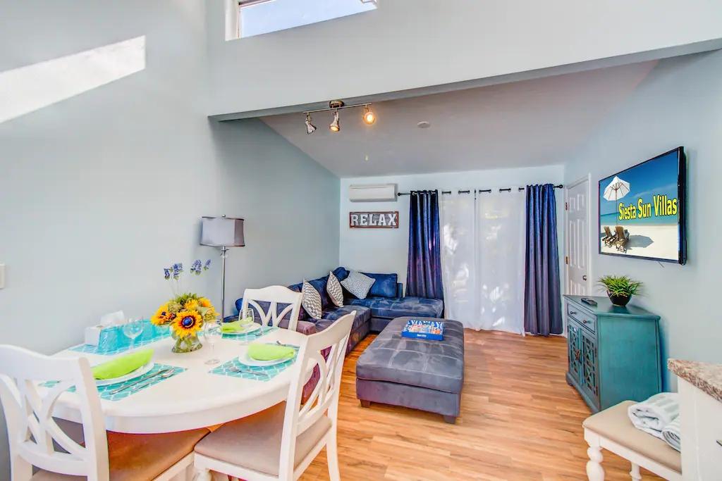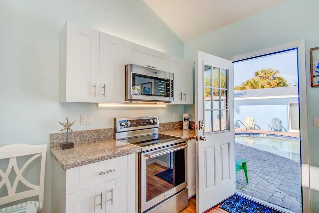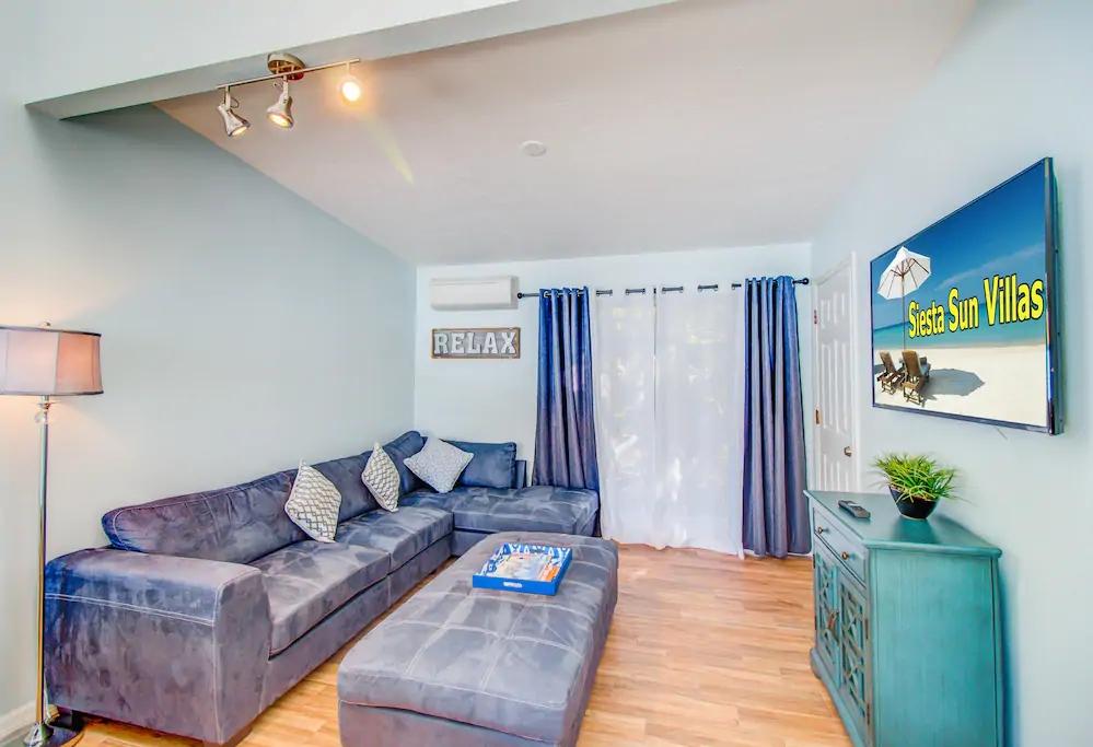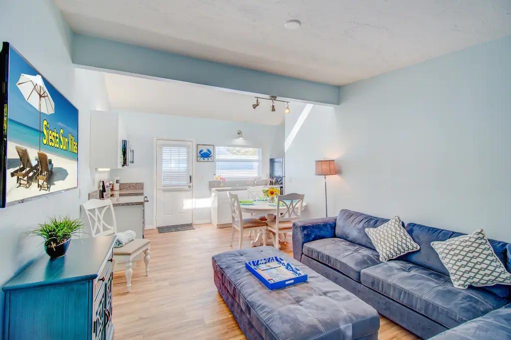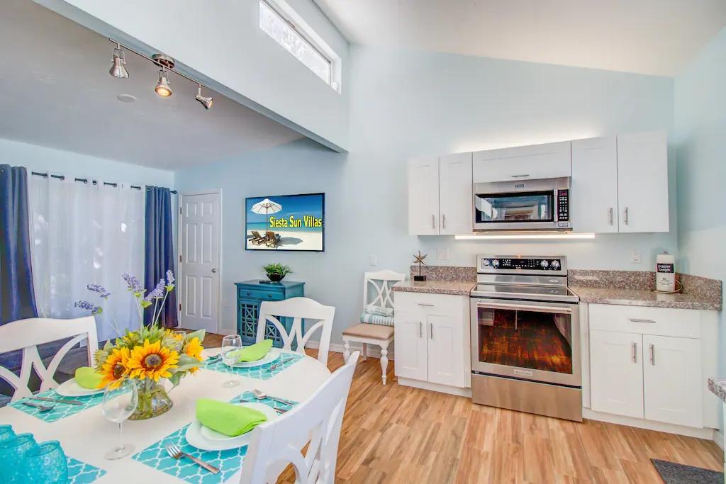 POOL VIEW Walk to Beach King bed SPECIALS V2, Beautiful Villa rental in Siesta Key has 1 bedrooms, 1 bathrooms, 2 sleeps, 1 minimum stay Villa for rent in Siesta Key Florida with the amenities and near by attractions , Air Conditioning, Balcony, Carbon-monoxide detector, Deck/Patio, Fire extinguisher, Free WiFi, Heating, Kitchen, No Pets Allowed, No Smoking, Parking, Smoke detector, Swimming pool, Wireless Internet, Coffee Maker , Freezer, Hair Dryer , Hangers, Iron & Board , Living Room, Microwave, Oven, Refrigerator, Shampoo, Stove, Television, Toaster, Washer/Dryer stainless steel appliances, fridge, Cooking basics, private entrance, Laptop friendly, Essentials, Cable, Bbq area, Dishes and silverware, Long term stays allowed, Single level home, Private living room, Hot water, Bed linens, Private entrance