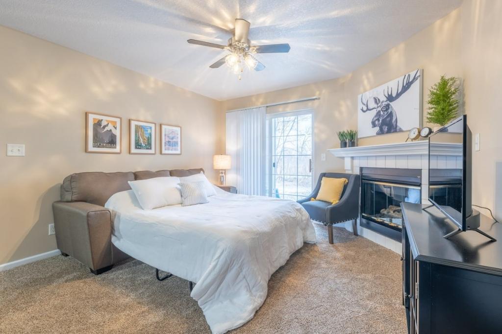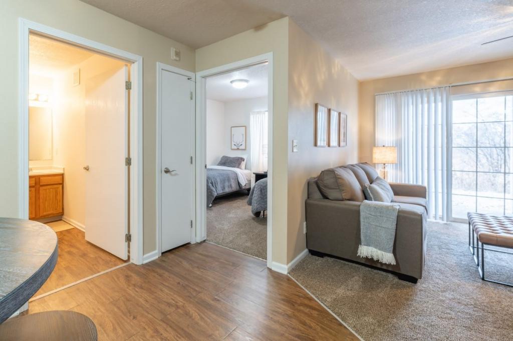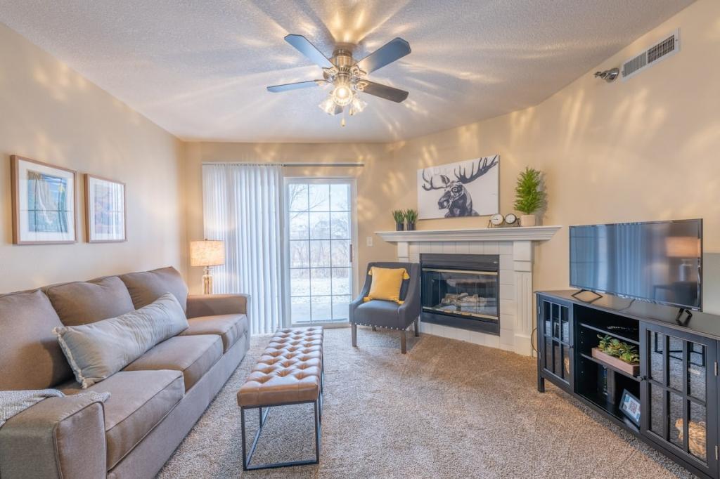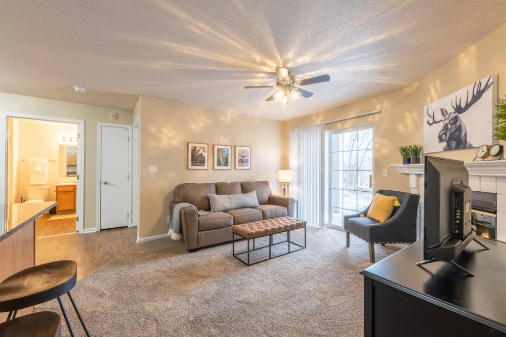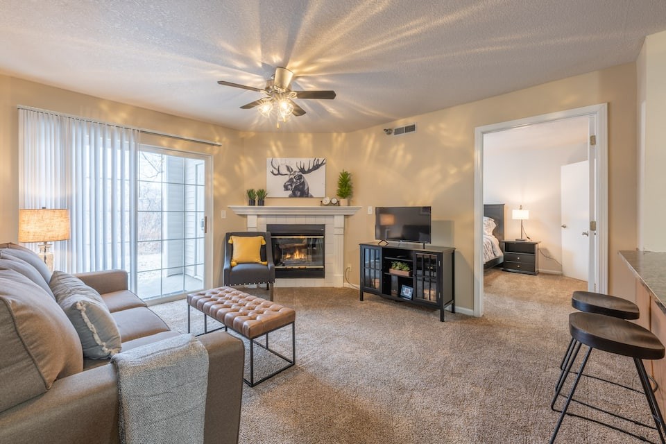 "Sequoia" 2BD/2BA Near Jordan Creek Mall!, Beautiful Apartment rental in Iowa has 2 bedrooms, 2 bathrooms, 6 sleeps, 2 minimum stay Apartment for rent in Iowa United States of America with the amenities and near by attractions , Air Conditioning, Balcony, Paper Towels, Communal Pool, Deck/Patio, Fireplace, Fitness Room , Free WiFi, Full Kitchen, Heating, Linens Provided, Non-Smoking, Parking, Pet Friendly, Porch / Veranda, Towels Provided, Wheelchair Accessible, Wireless Internet, Washing Machine, Kitchen, Children Welcome, Swimming pool, Fire extinguisher, Children allowed, No Smoking, No parties/events, Smoke detector, Carbon-monoxide detector, Exterior lighting, Microwave, Cable/Satellite TV, Outdoor Grill, Television, Ceiling Fans, Freezer, Oven, Toaster, Coffee Maker , Hair Dryer , Refrigerator, Washer/Dryer , Dishes & Utensils, Iron & Board , Stove, Dishwasher, Heater, First-aid kit, Clothes Dryer, Ice Maker, Dining Area, Basic Soaps, Toilet Paper, Living Room, Shampoo, HangersBath, Cleaning products, Conditioner, Body wash, Hot water, Shower gel, bed sheets, Bed linen, Extra pillows and blankets, Room-darkening shades, Clothes drying rack, Ethernet connection, TV with standard cable/satellite, Cot, Travel cot, High chair, Indoor fireplace, Central heating, Dedicated workspace, Cooking basics(Pots and pans- oil- salt and pepper), Dishes and silverware, Wine glasses, Baking sheet, Barbecue utensils, Dining table, Launderette nearby, Garden, Outdoor furniture, Outdoor dining area, BBQ grill, Free parking on premises, Free on-street parking, Shared outdoor pool, Shared gym nearby, Single level home, Luggage drop-off allowed, Long-term stays allowed, Self check-in, Smart lock